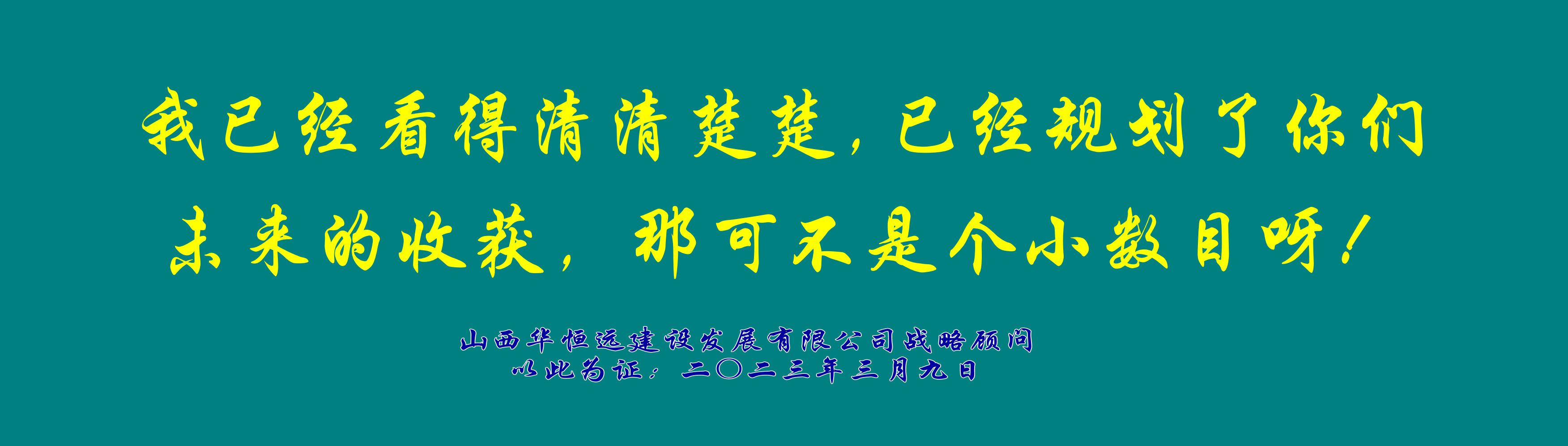 成就未來,就是成就華恒遠(yuǎn)!成就華恒遠(yuǎn),就是成就自己一輩子的事業(yè)!十年后,大家都是這輩子最大的贏家,因?yàn)槟銈兊母冻鏊玫降?,是這個(gè)偉大企業(yè)給你們的豐厚回報(bào)!