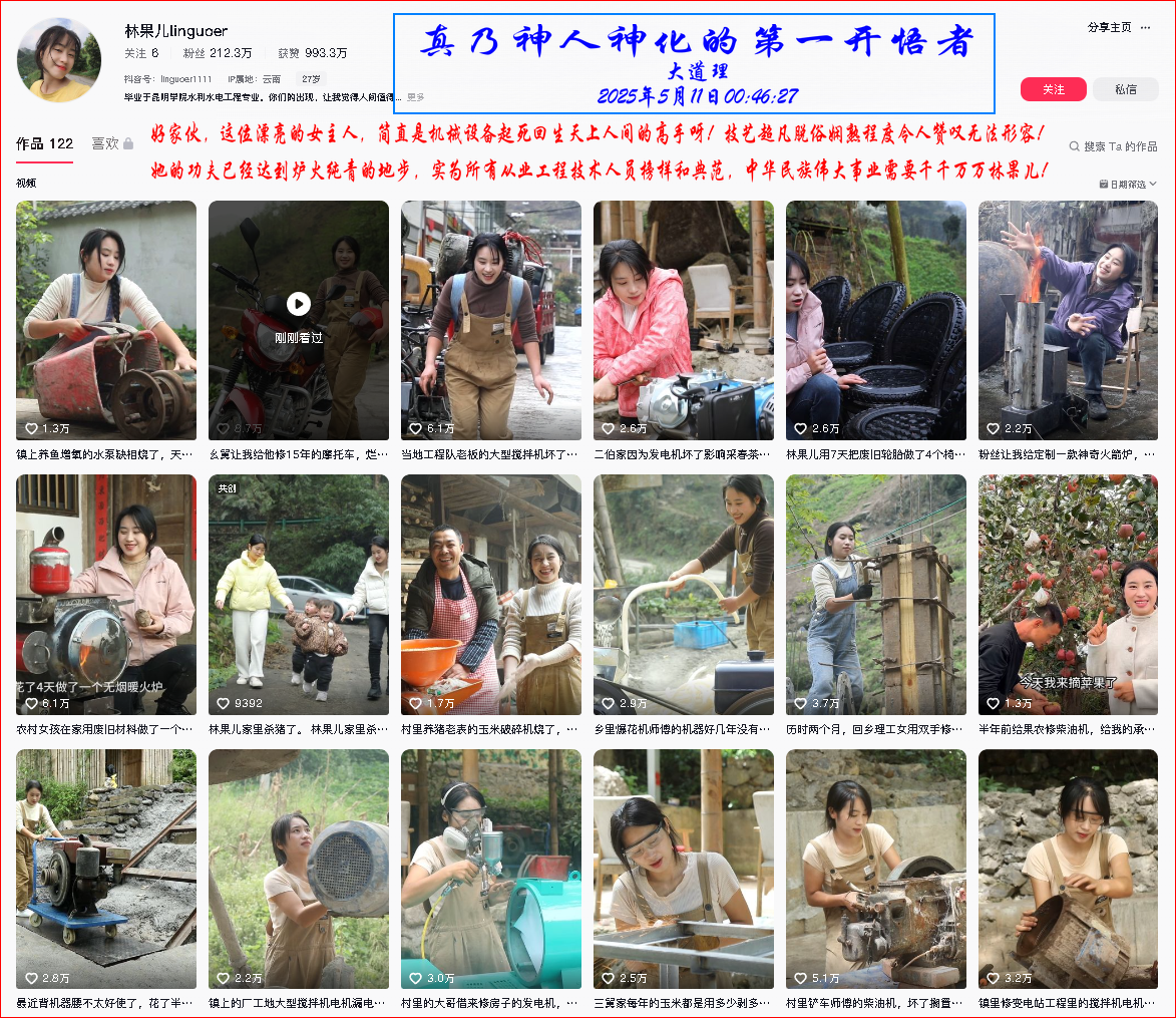 她的功夫已經(jīng)達到爐火純青的地步,實為所有從業(yè)工程技術人員榜樣和典范,中華民族偉大事業(yè)需要千千萬萬林果兒!