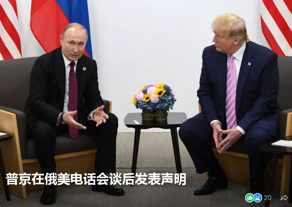 特朗普在與普京交談后表示俄羅斯和烏克蘭將立即開始停火和停止沖突的談判;