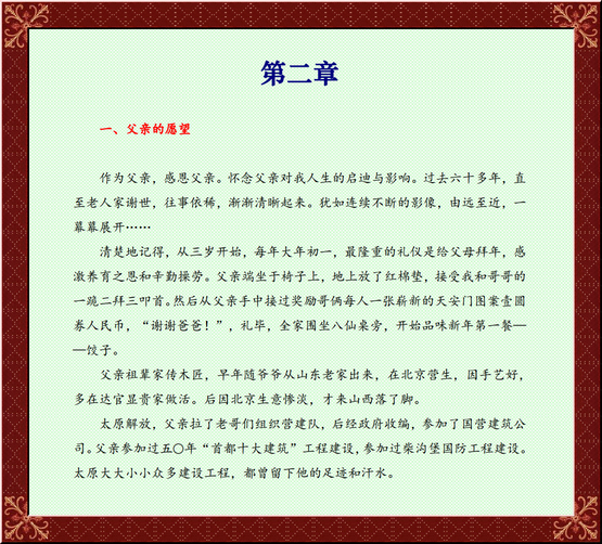 我最大的感慨和滿足,是對父母的孝道做到了無憾無悔,在他們生前和身后都恪盡做兒子的本分,替他們分憂解難竭盡全力,并且作為為人處世第一準則!因此,一輩子情感的付出獲得了百倍的回報,真正得到了一般人不可能理解的空間和境界!那就是智慧、格局、成就未來的大道理!