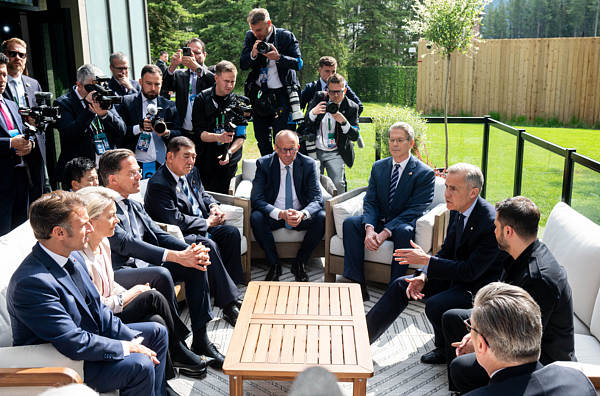 當?shù)貢r間6月17日,德國總理默茨在G7峰會上 視覺中國
