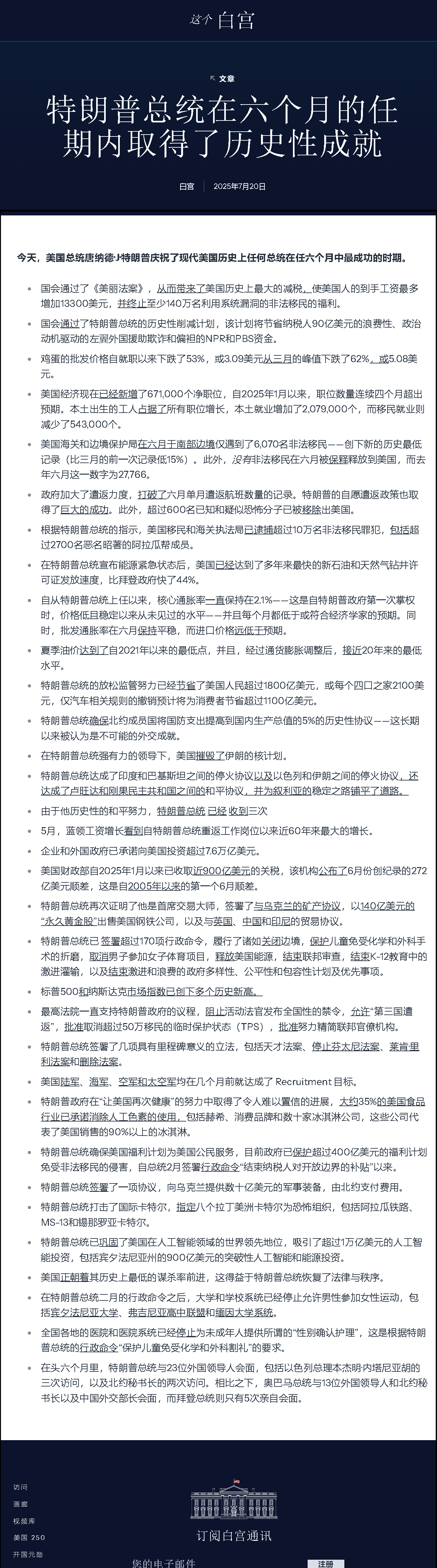 今天,記錄特朗普二進宮六個月的成就,十年后看看歷史如何評價和感悟?