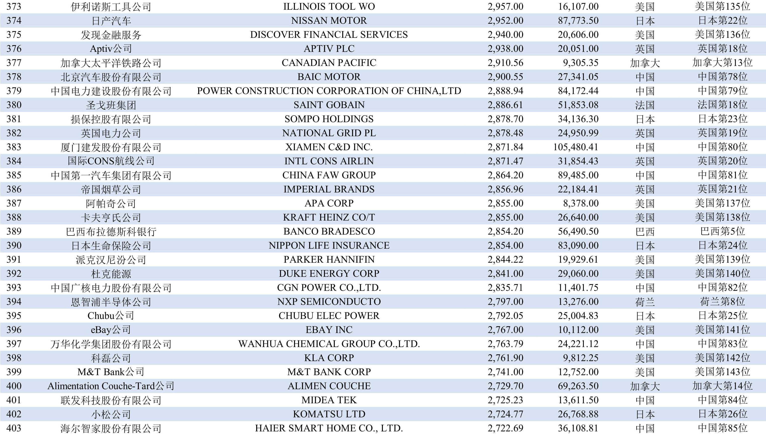中美上榜企業(yè)近六成,雙超強格局初步形成