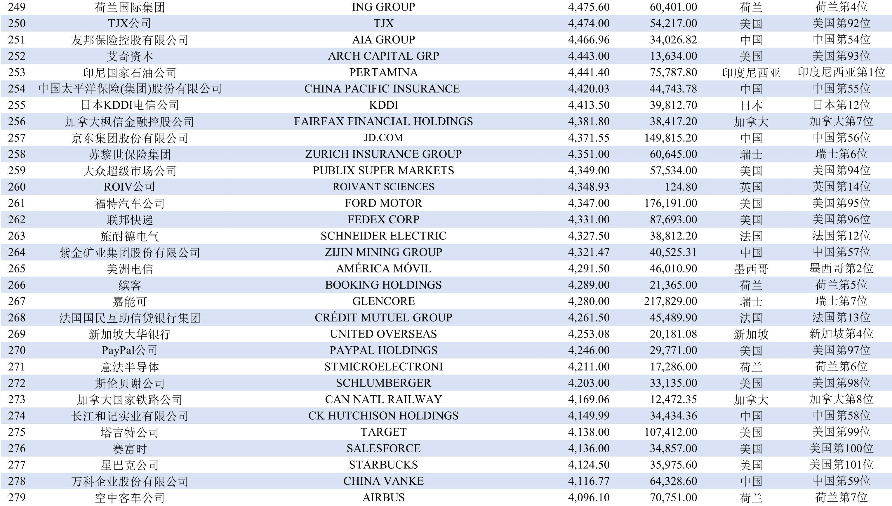 排在第九位的國家有三個,分別是澳大利亞、荷蘭和印度,均有8家上榜企業(yè);排在第十二位至第二十一位的國家分別是巴西、俄羅斯、韓國、西班牙、新加坡、意大利、愛爾蘭、墨西哥、阿聯(lián)酋、丹麥,均各有2-6家企業(yè)上榜。