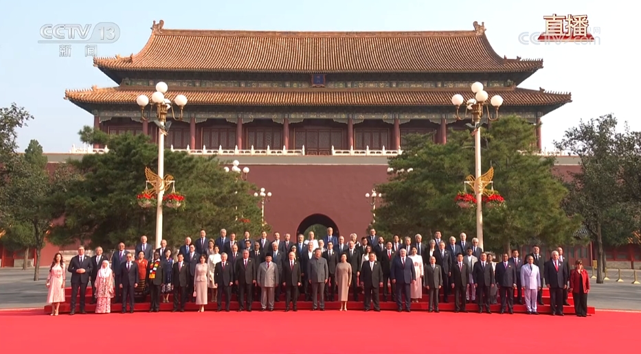 26架直-19武裝直升機(jī)組成“80”字樣,寓意紀(jì)念中國人民抗日戰(zhàn)爭暨世界反法西斯戰(zhàn)爭勝利80周年