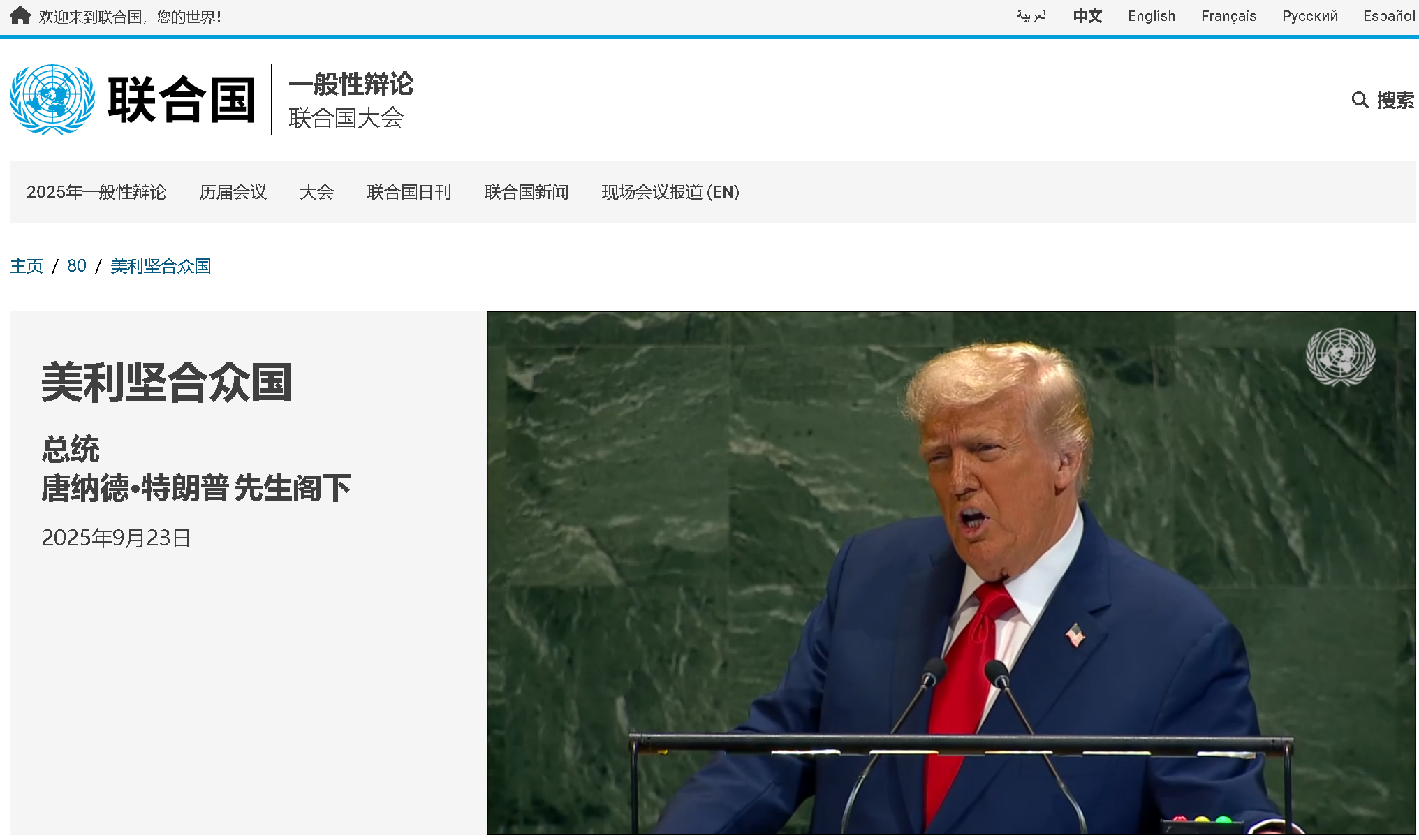>> 另請參閱聯(lián)合國新聞網(wǎng)站以印地語、斯瓦希里語和烏爾都語發(fā)布的報道,了解美利堅合眾國總統(tǒng)在大會一般性辯論中的聲明。