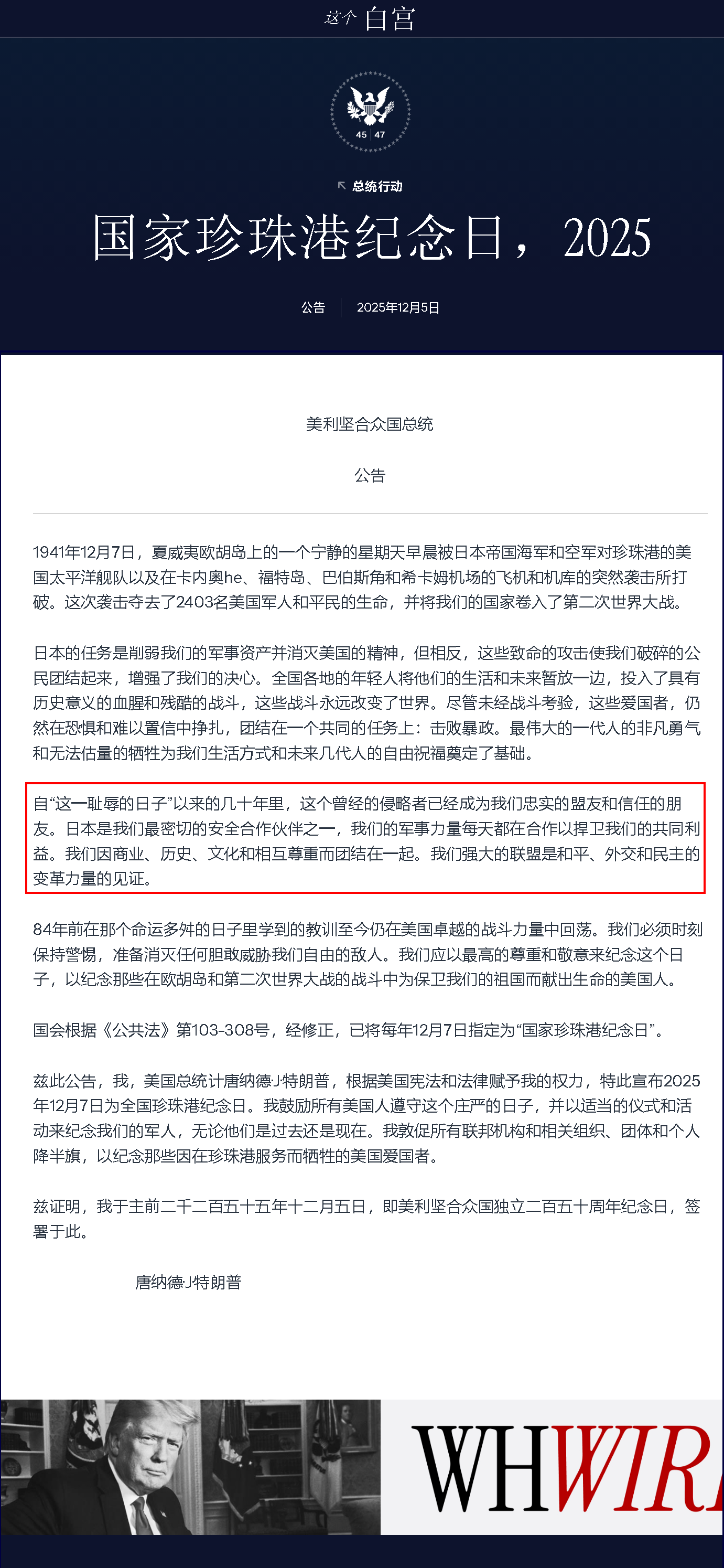 今天,特朗普簽署一項十分滑稽可笑的公告,把曾經(jīng)重創(chuàng)美國的日本軍國主義幽靈粉拭為忠實的盟友和信任的朋友,真是美國意識形態(tài)顛倒黑白是非不分!