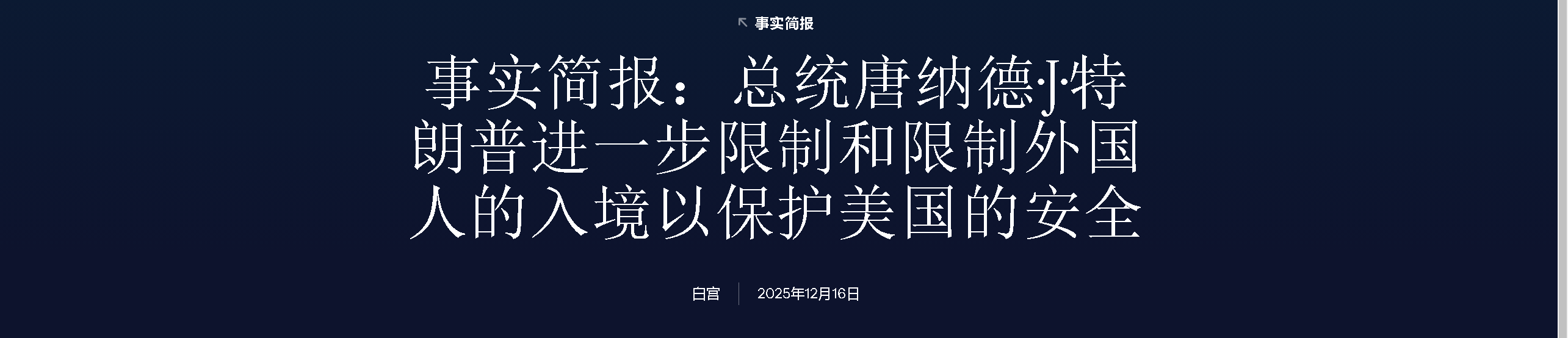 2025年6月,特朗普總統(tǒng)恢復(fù)了其第一任期的旅行限制,結(jié)合了對(duì)當(dāng)前全球篩查、審查和安全風(fēng)險(xiǎn)的最新評(píng)估。