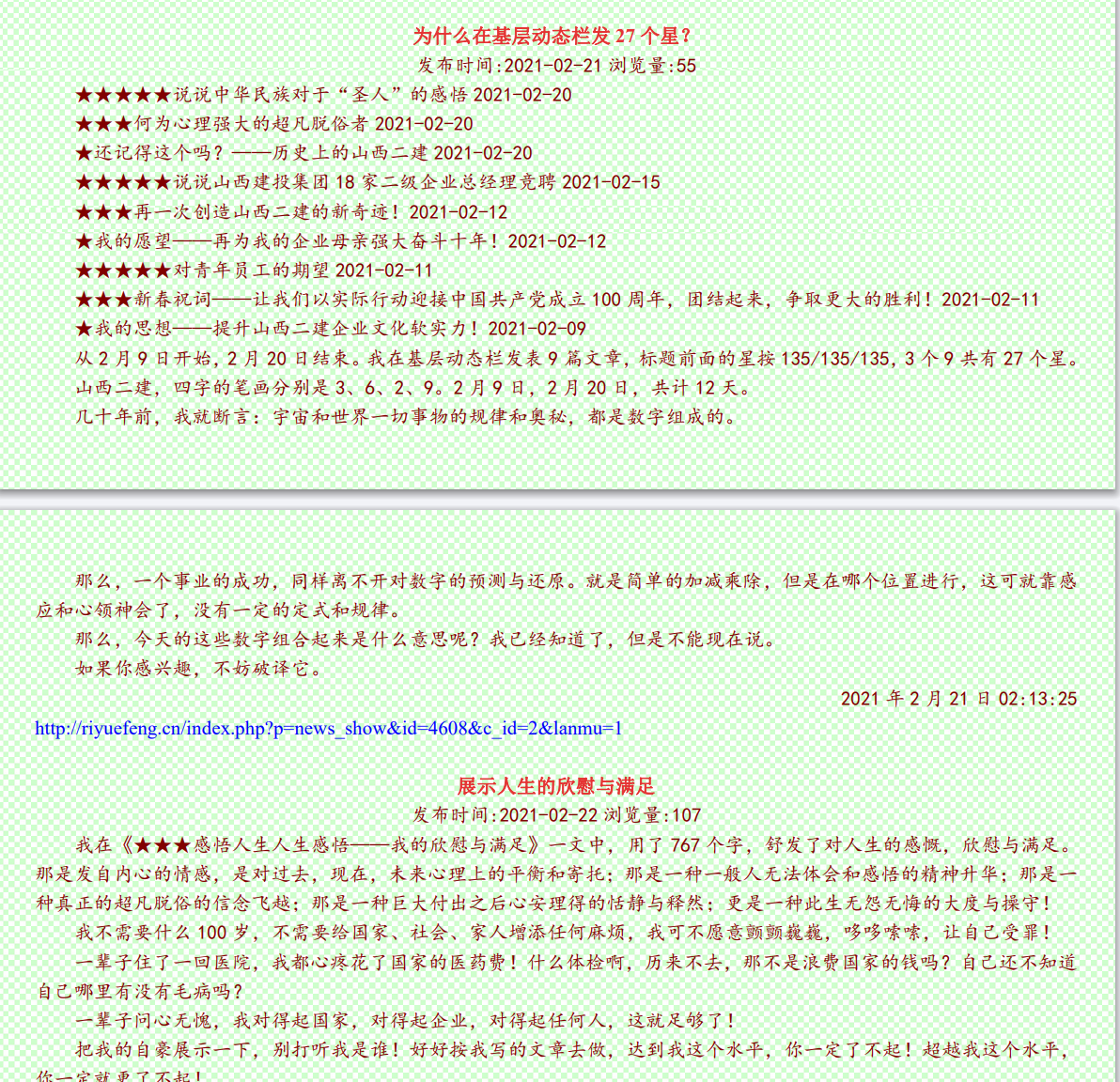 下面這些被建投網(wǎng)站轉(zhuǎn)發(fā)的,只是我的文章冰山一角!雖然如此,也能讓二建所有的人用一輩子去感悟,尤其是當(dāng)時(shí)與這些文章有關(guān)聯(lián)的所有人,現(xiàn)在結(jié)果會(huì)讓他們深刻反思那個(gè)時(shí)候的命運(yùn)改變——后悔莫及?。?/span>