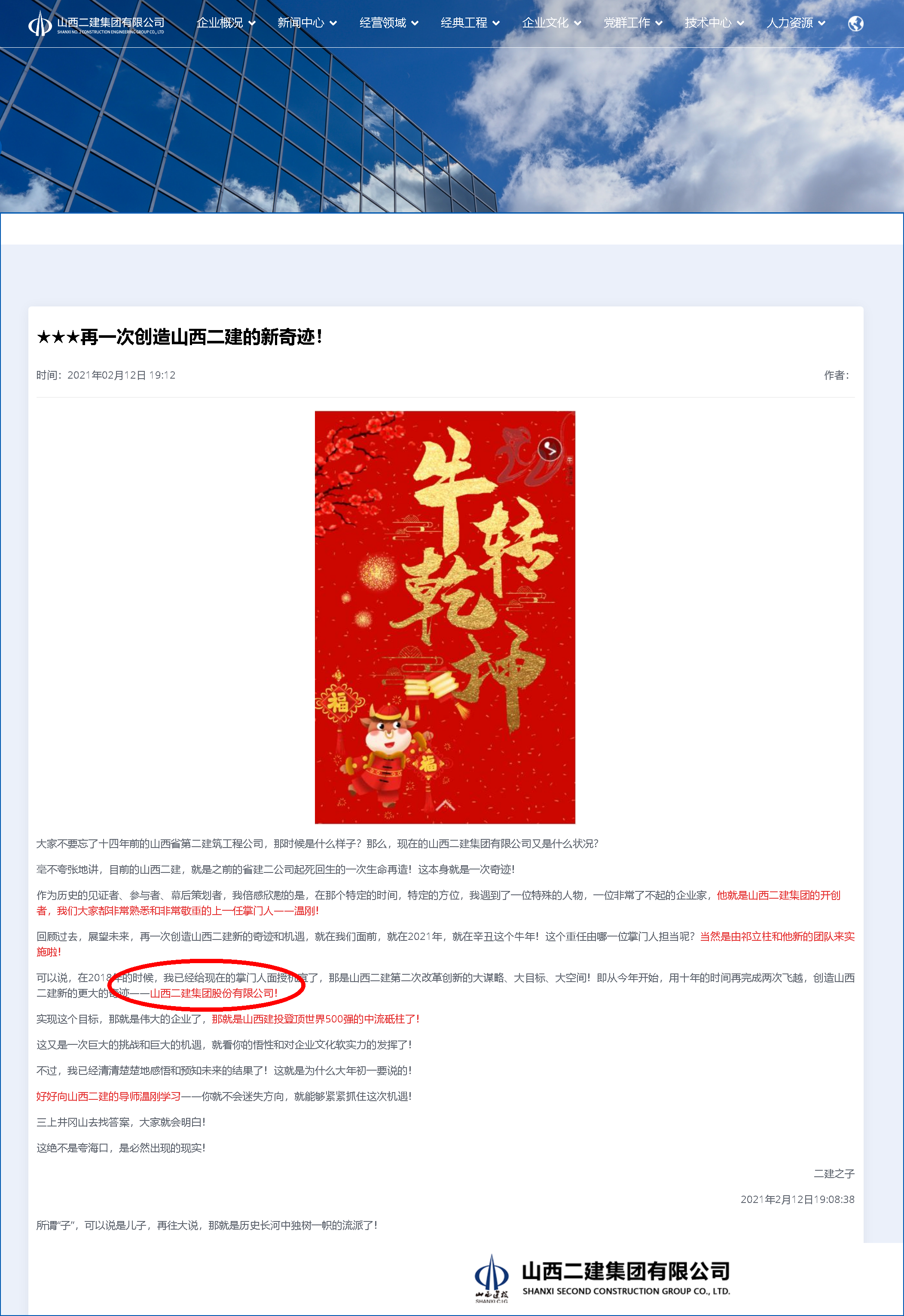 回顧過(guò)去,展望未來(lái),再一次創(chuàng)造山西二建新的奇跡和機(jī)遇,就在我們面前,就在2021年,就在辛丑這個(gè)牛年!這個(gè)重任由哪一位掌門人擔(dān)當(dāng)呢?當(dāng)然是由祁立柱和他新的團(tuán)隊(duì)來(lái)實(shí)施啦!
