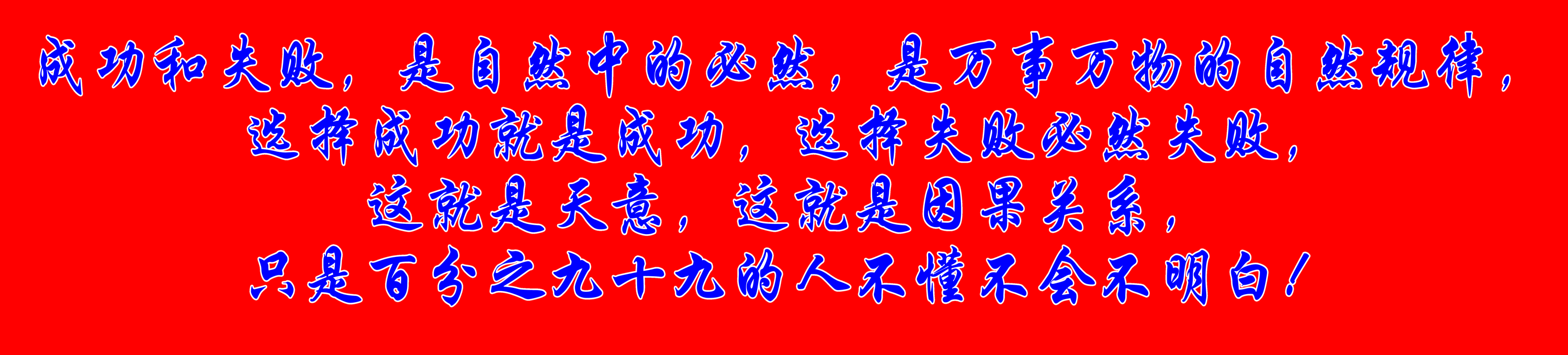 成功和失敗,是自然中的必然,是萬(wàn)事萬(wàn)物的自然規(guī)律,選擇成功就是成功,選擇失敗必然失敗,這就是天意,這就是因果關(guān)系,只是百分之九十九的人不懂不會(huì)不明白!