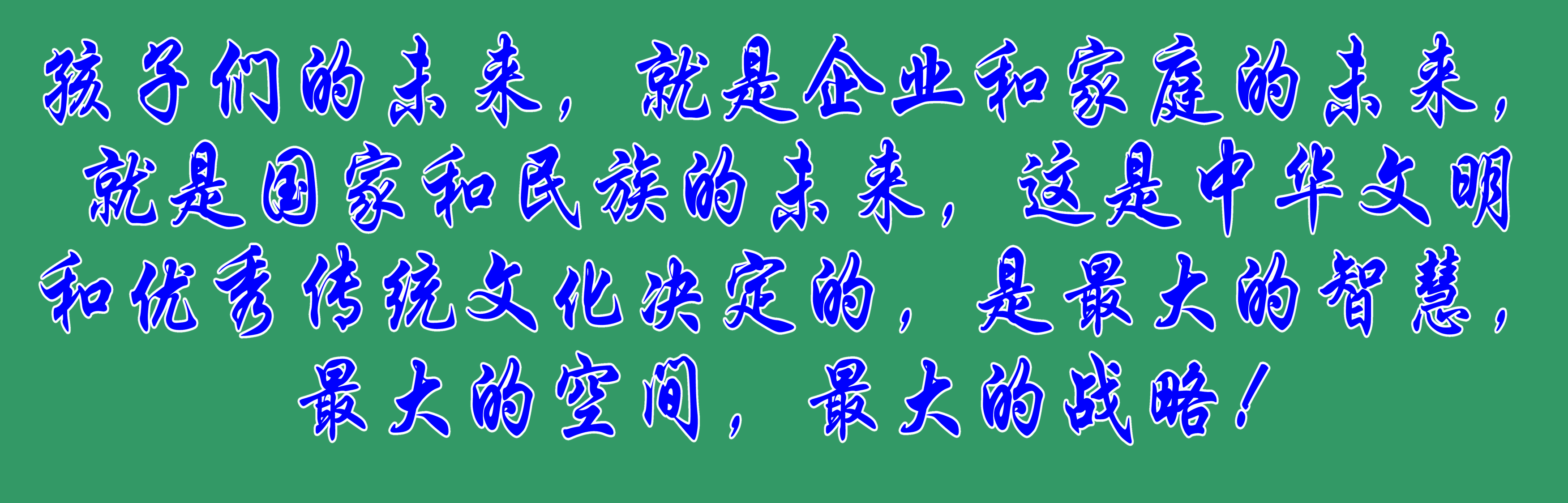 孩子們的未來,就是企業(yè)和家庭的未來,就是國家和民族的未來,這是中華文明和優(yōu)秀傳統(tǒng)文化決定的,是最大的智慧,最大的空間,最大的戰(zhàn)略!