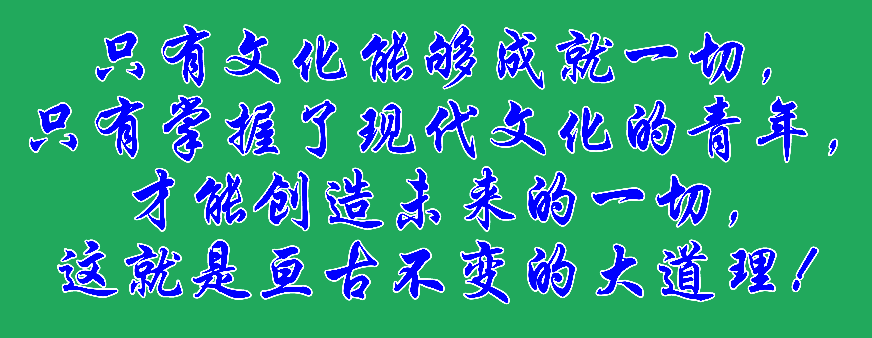 只有文化能夠成就一切,只有掌握了現(xiàn)代文化的青年,才能創(chuàng)造未來的一切,這就是亙古不變的大道理!