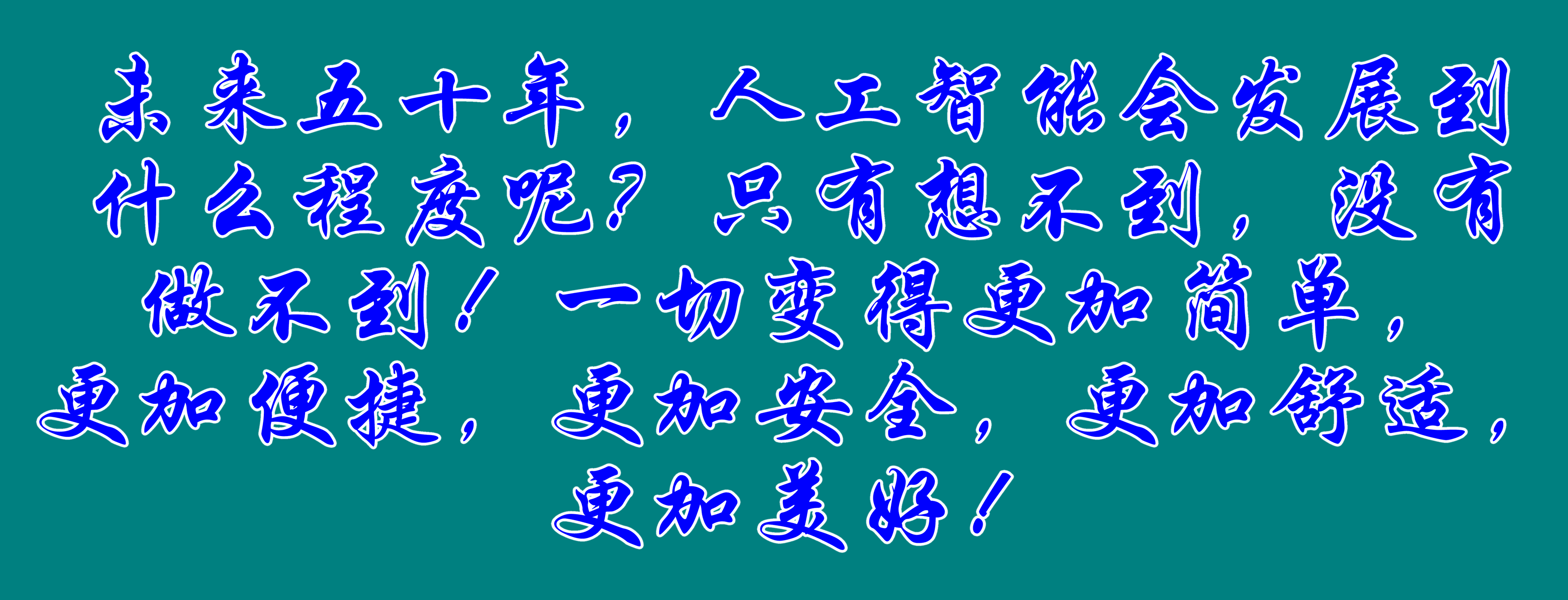 未來五十年,人工智能會(huì)發(fā)展到什么程度呢?只有想不到,沒有做不到!一切變得更加簡(jiǎn)單,更加便捷,更加安全,更加舒適,更加美好!