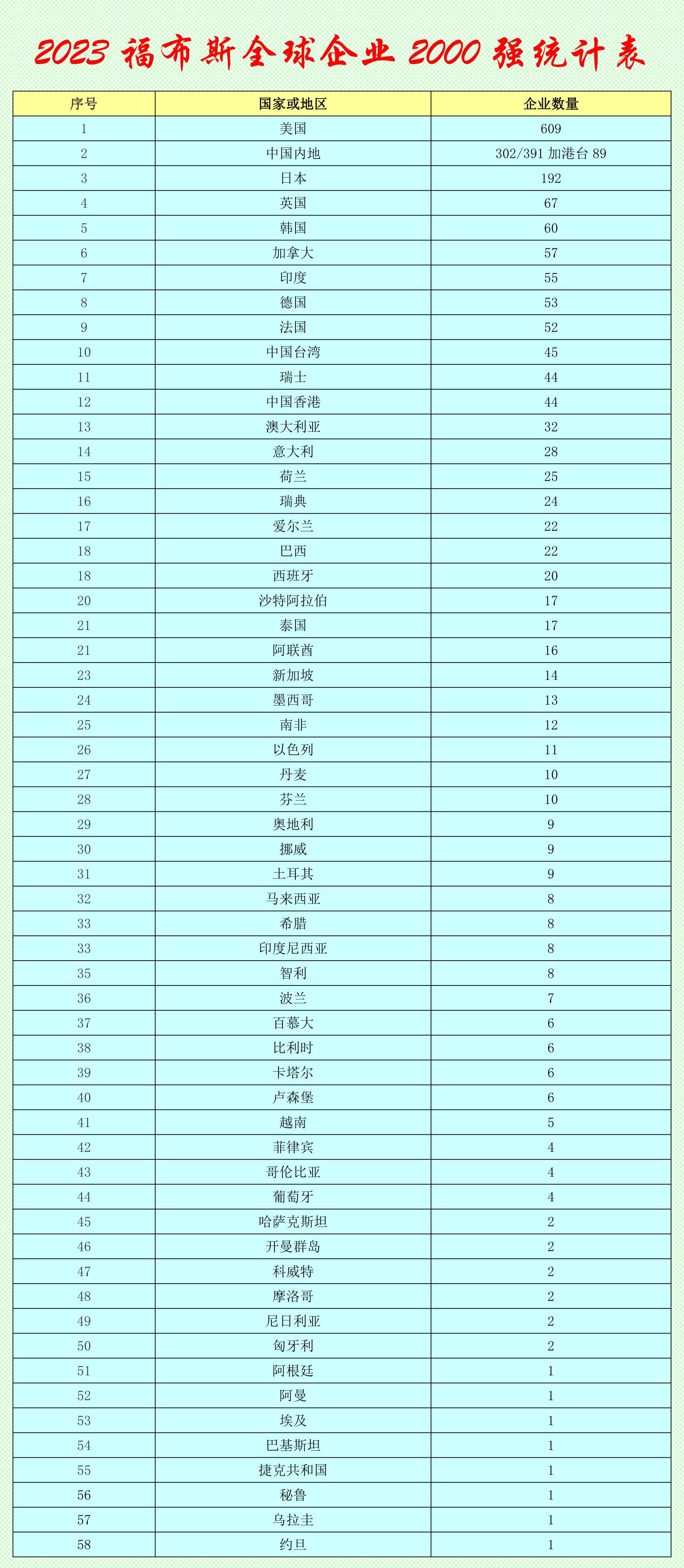 從2003年開始,每年發(fā)布全球企業(yè)2000強榜單,中國企業(yè)以后來者居上的磅礴之勢進軍福布斯,短短二十年,已經成為世界亞軍,這是何等的速度,何等的成就,何等的偉大??!