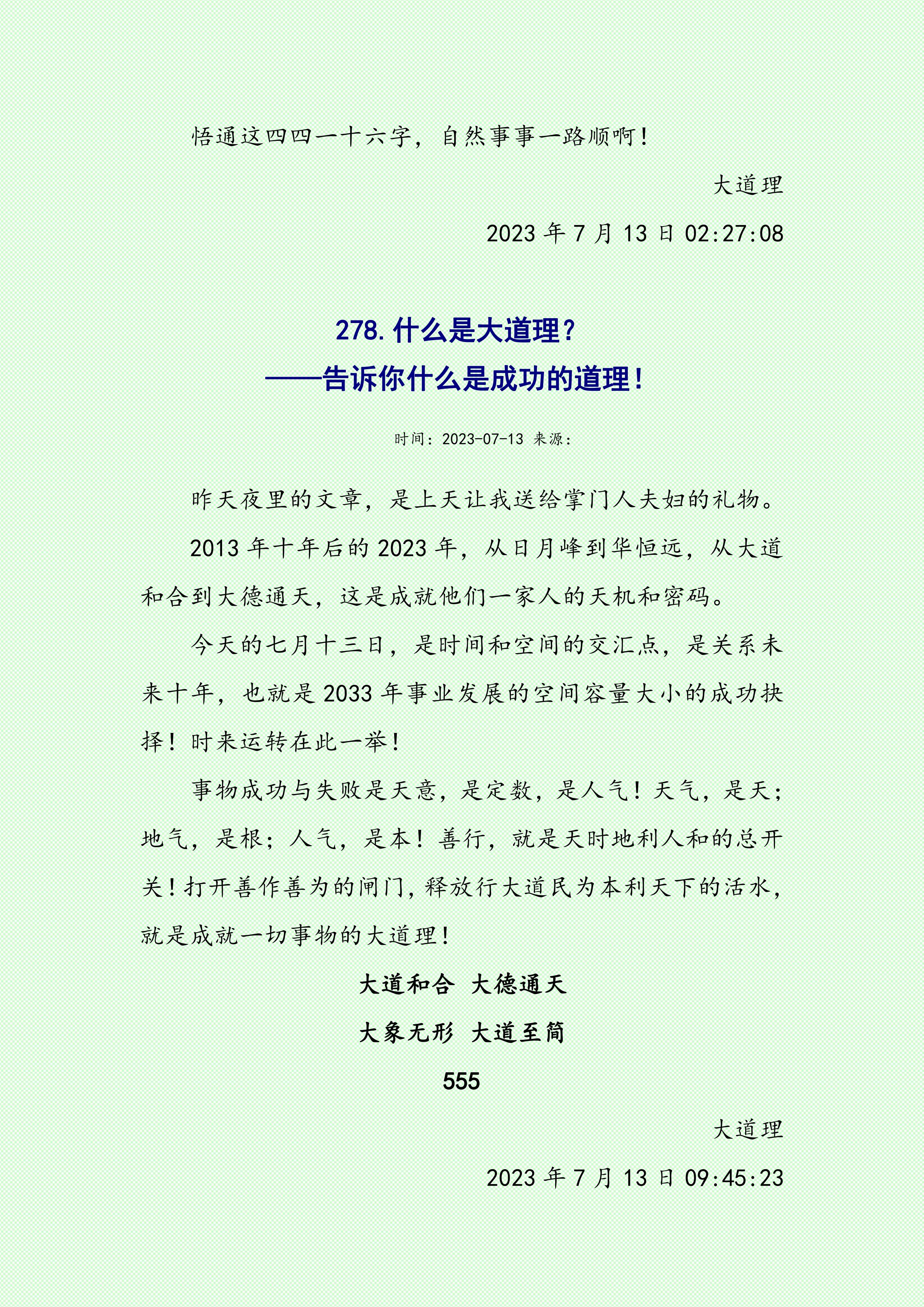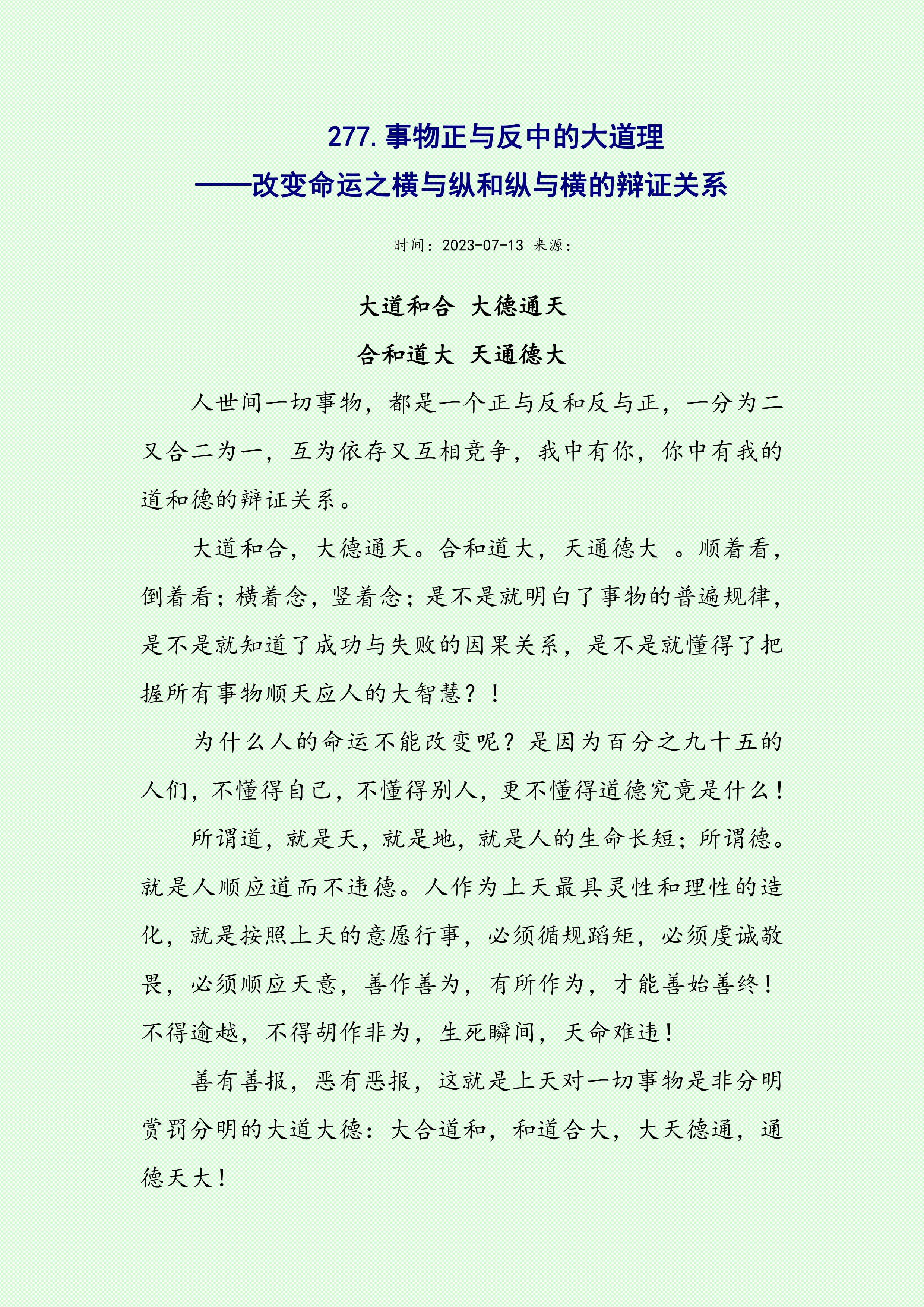 大道至簡(jiǎn)就是天人合一,大道和合就是自然規(guī)律,大德通天就是人間天理。成就一番大事業(yè),必須具備的基本素質(zhì)和胸懷抱負(fù),為國家民族奉獻(xiàn)力量,為企業(yè)盡心竭力,為家庭承擔(dān)責(zé)任,使命擔(dān)當(dāng)方能成就人生,成就事業(yè),成就未來!