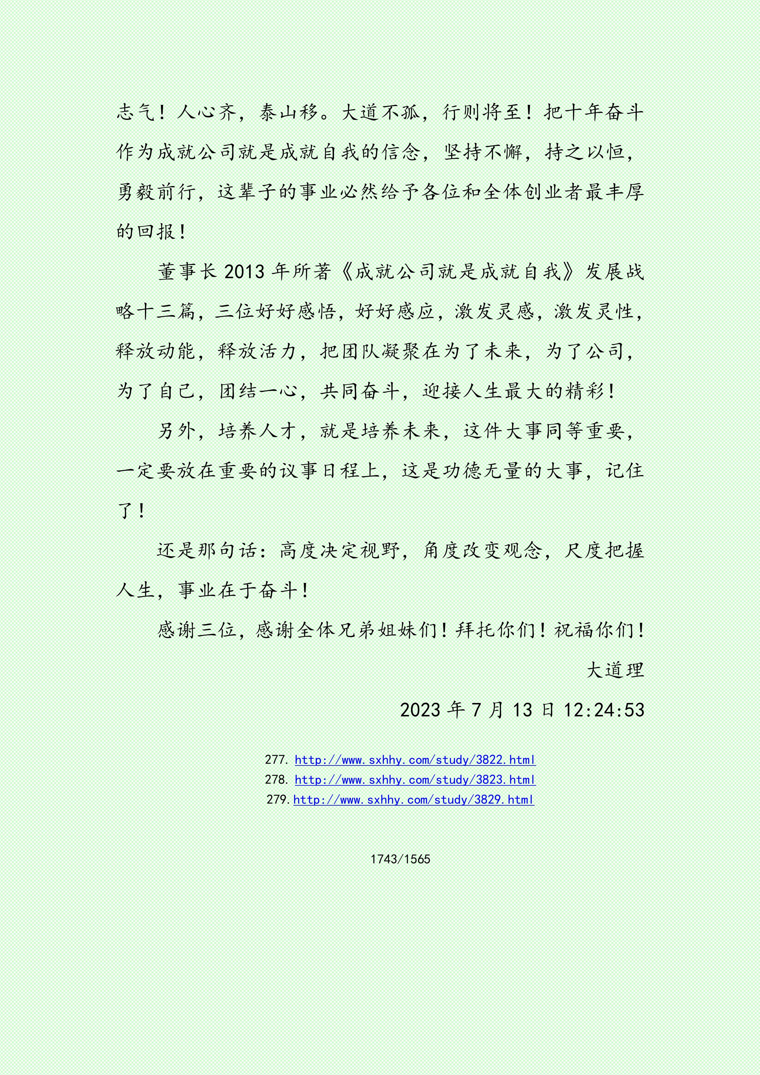 今天,是開天眼的時(shí)間與空間交匯點(diǎn),我以1743字轉(zhuǎn)達(dá)上天的意愿,即華恒遠(yuǎn)全體員工需要身體力行的三維空間。