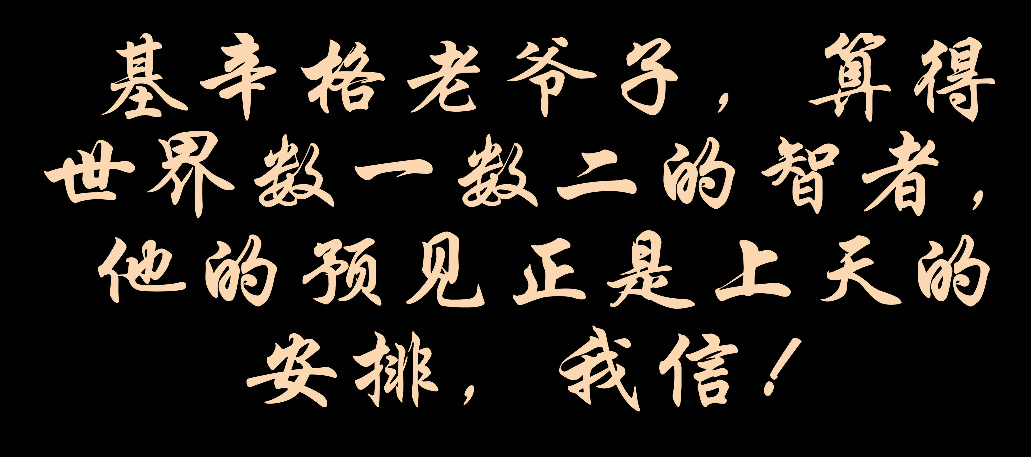 基辛格老爺子,算得世界數(shù)一數(shù)二的智者,他的預(yù)見正是上天的安排,我信!