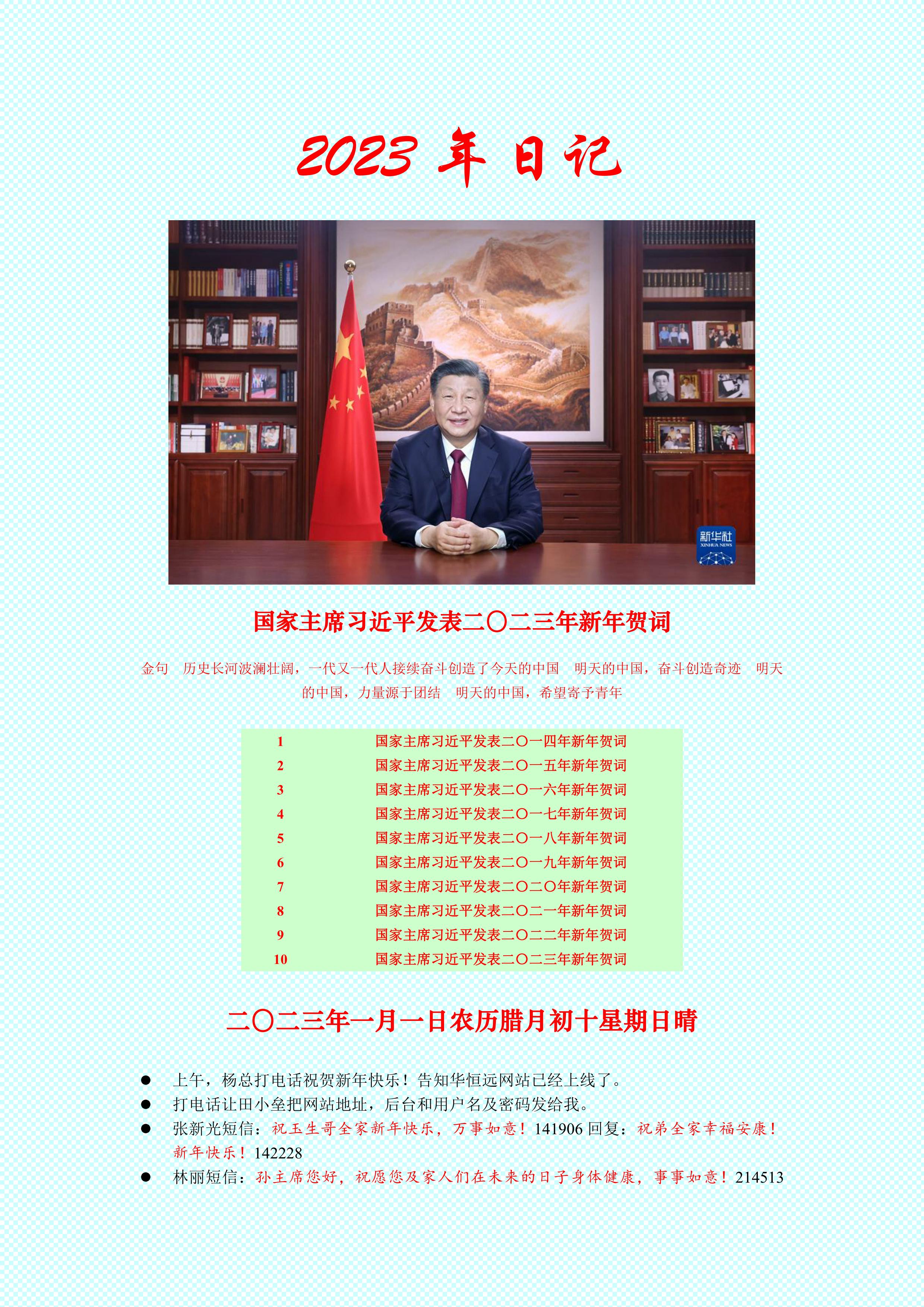 下面是2023年我的日記第一天和第二天,帖出來與華恒遠(yuǎn)的創(chuàng)業(yè)者分享,拋磚引玉,提升寫日記的感悟、感應(yīng)和靈感,讓自己的靈性釋放,理想奔放,信心倍增,如此才是行之有效的啟發(fā)和教化!