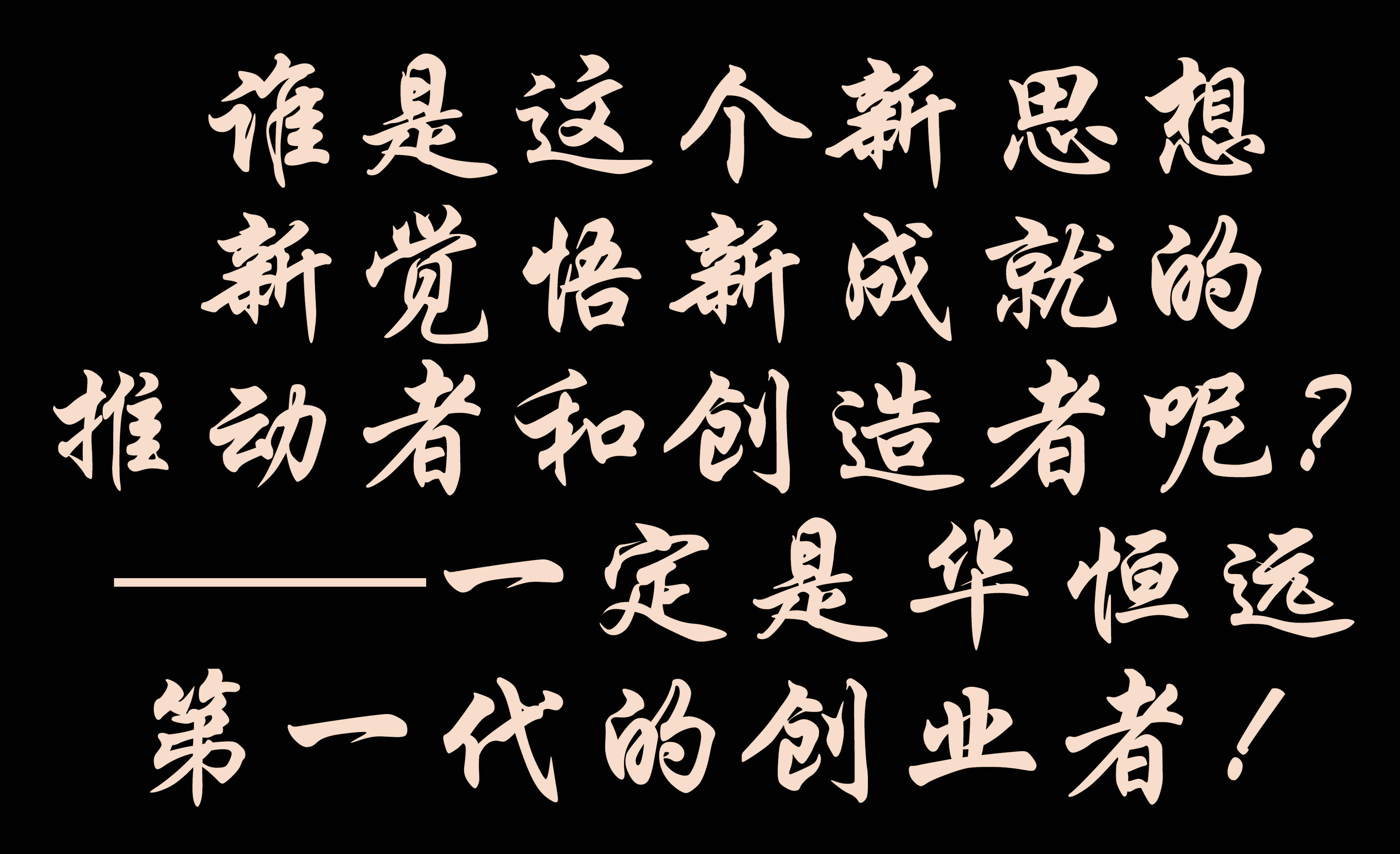 誰是這個(gè)新思想新覺悟新成就的推動(dòng)者和創(chuàng)造者呢?——一定是華恒遠(yuǎn)第一代的創(chuàng)業(yè)者!