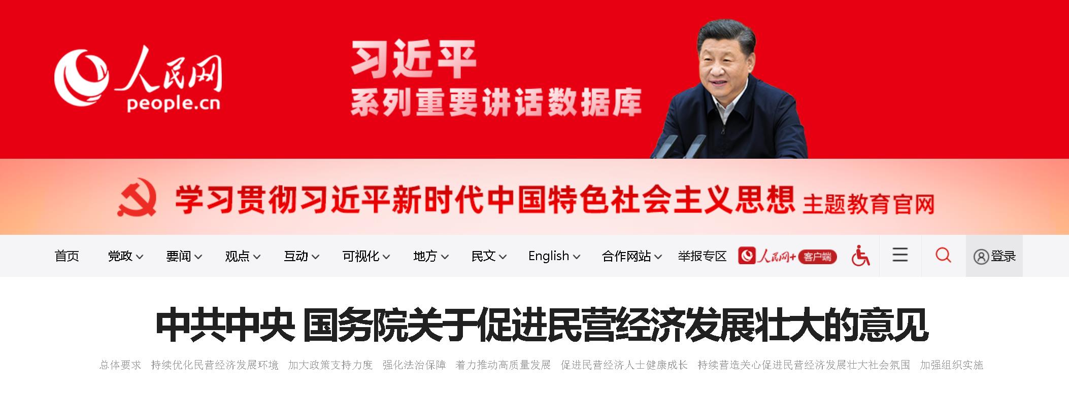 今天,《中共中央國務(wù)院關(guān)于促進民營經(jīng)濟發(fā)展壯大的意見》發(fā)布。