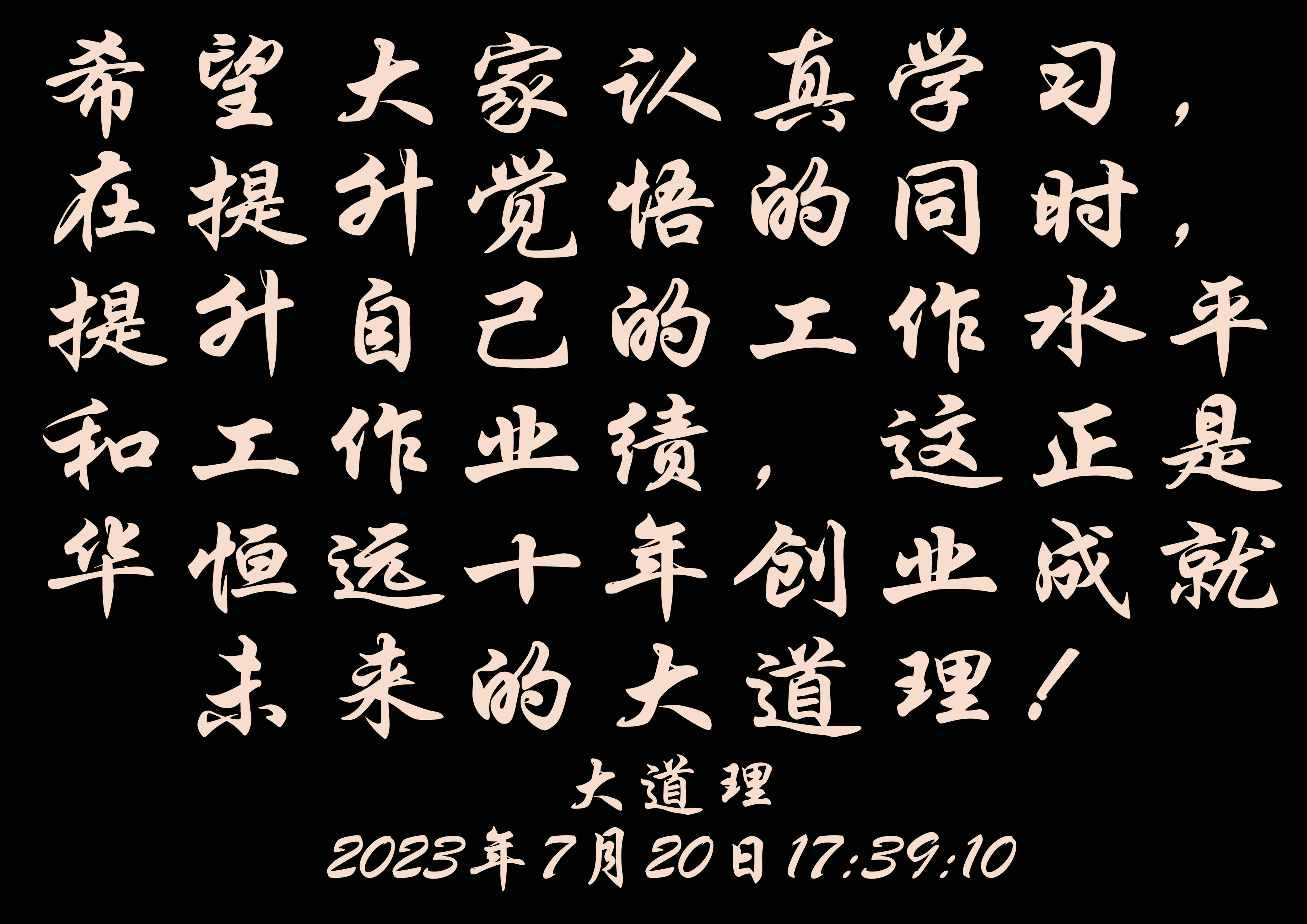 希望大家認(rèn)真學(xué)習(xí),在提升覺悟的同時(shí),提升自己的工作水平和工作業(yè)績(jī),這正是華恒遠(yuǎn)十年創(chuàng)業(yè)成就未來(lái)的大道理!