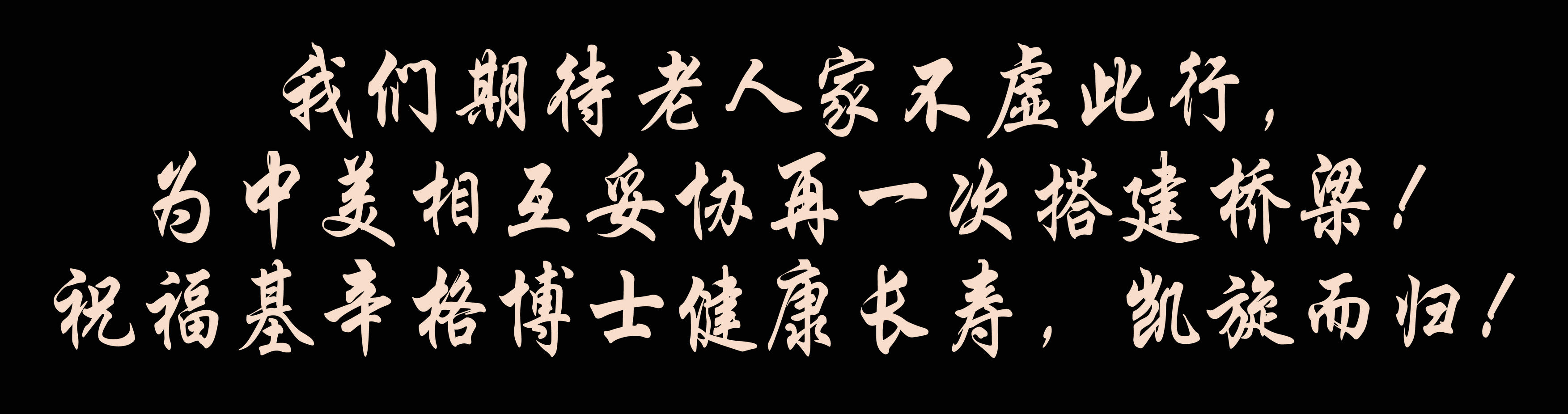 今年超越百歲和超越一百次來中國的壽星佬,美國前國務(wù)卿基辛格博士,是世界上最有遠(yuǎn)見卓識(shí)的政治家和思想家,作為中美友好的上天使者,他老人家為人類和平發(fā)展做出了巨大的貢獻(xiàn),所以上天必然給予他最高規(guī)格獎(jiǎng)賞和最高級(jí)別榮譽(yù)!