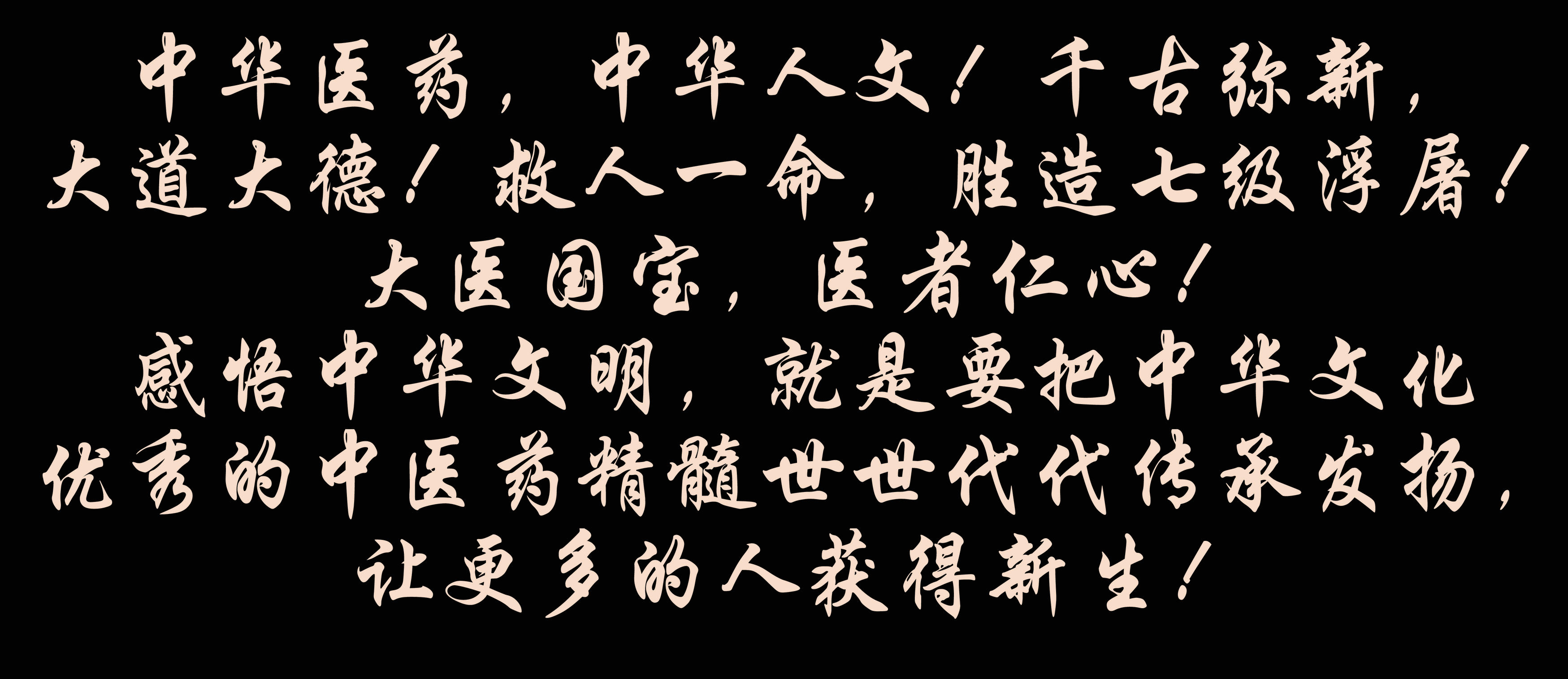 中華醫(yī)藥,中華人文!千古彌新,大道大德!救人一命,勝造七級浮屠!大醫(yī)國寶,醫(yī)者仁心!