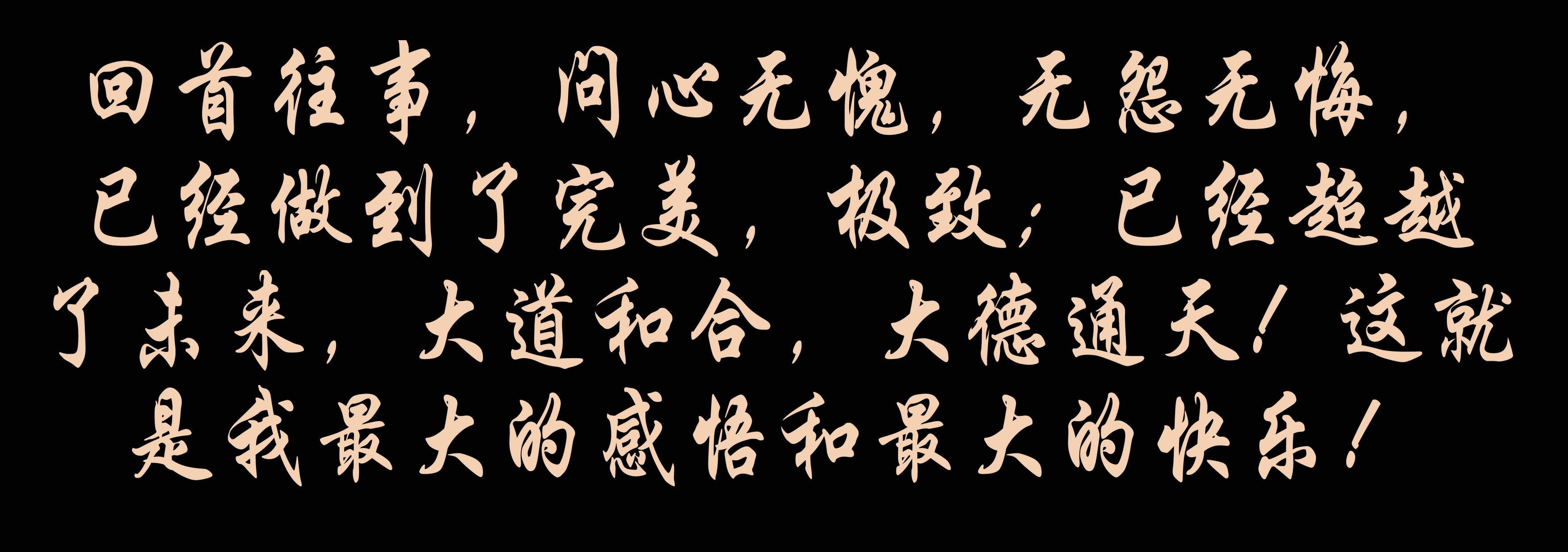 回首往事,問(wèn)心無(wú)愧,無(wú)怨無(wú)悔,已經(jīng)做到了完美,極致;已經(jīng)超越了未來(lái),大道和合,大德通天!這就是我最大的感悟和最大的快樂(lè)——成就我成就的企業(yè)和未來(lái)!