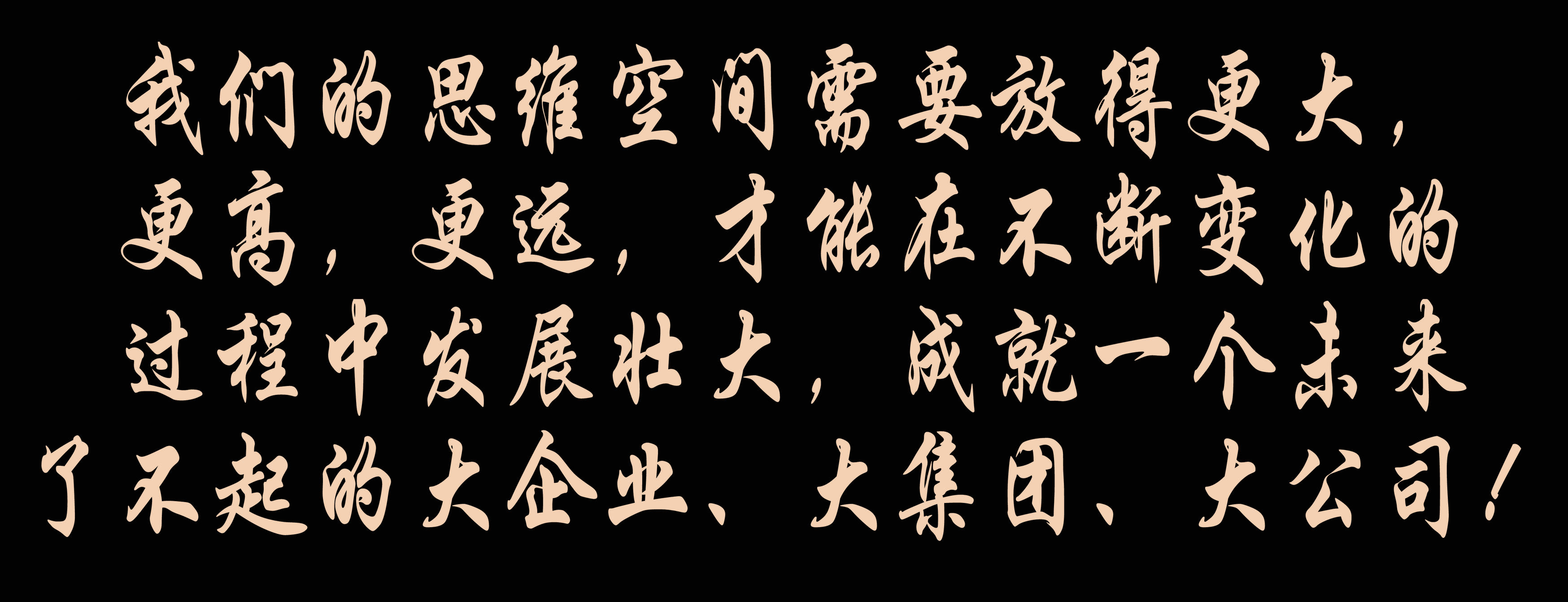 因此,我們的思維空間需要放得更大,更高,更遠,才能在不斷變化的過程中發(fā)展壯大,成就一個未來了不起的大企業(yè)、大集團、大公司!
