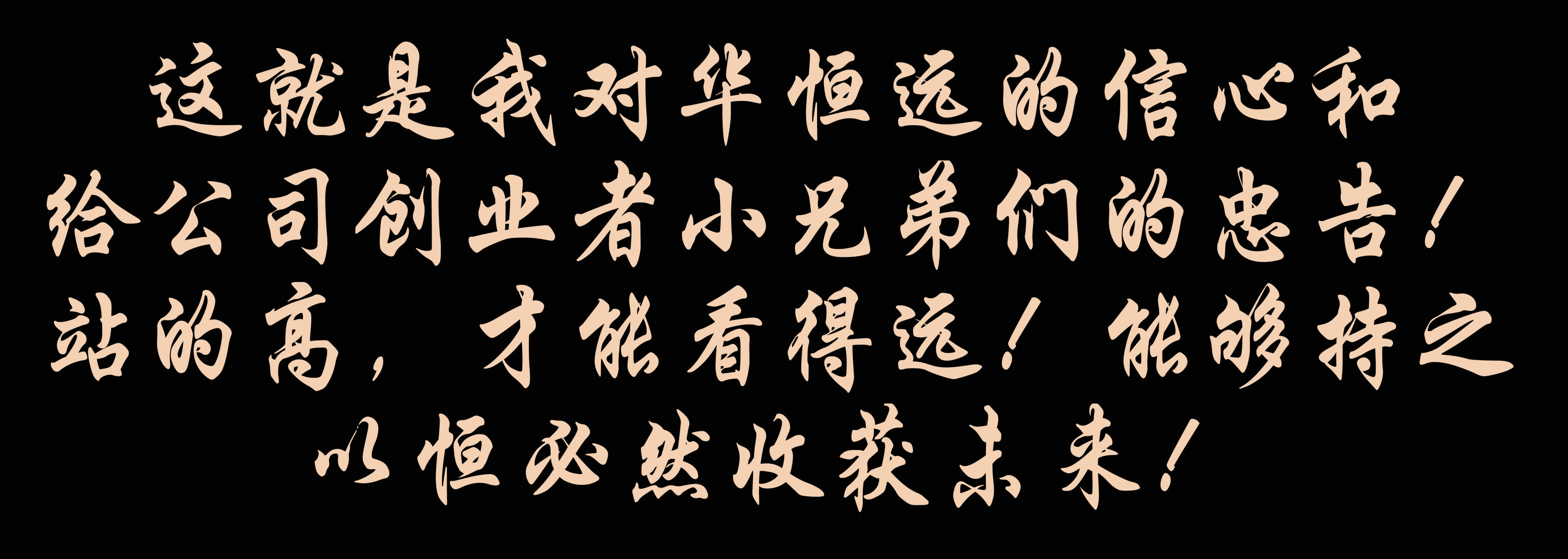 這就是我對華恒遠的信心和給公司創(chuàng)業(yè)者小兄弟們的忠告!站的高,才能看得遠!能夠持之以恒必然收獲未來!