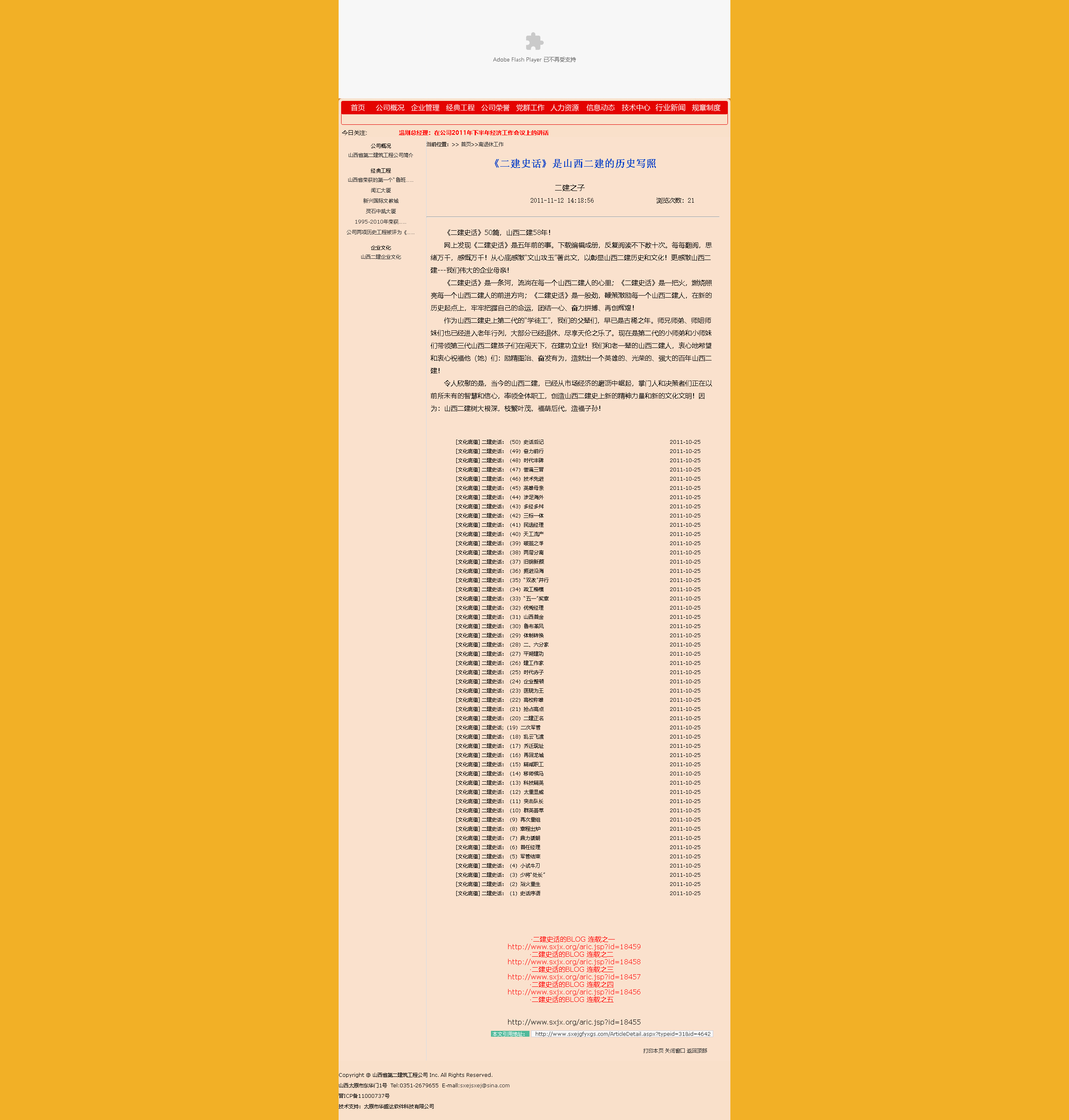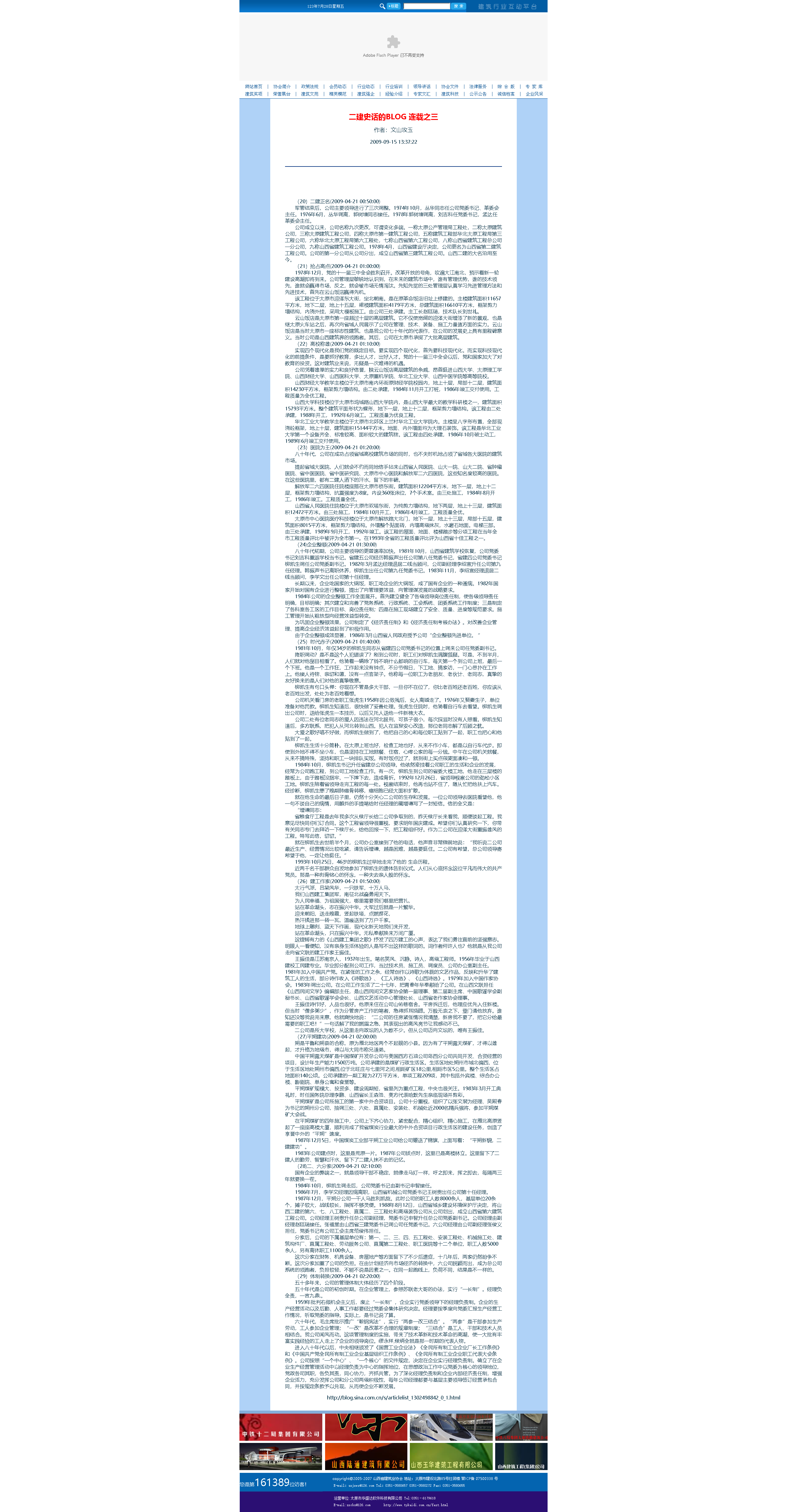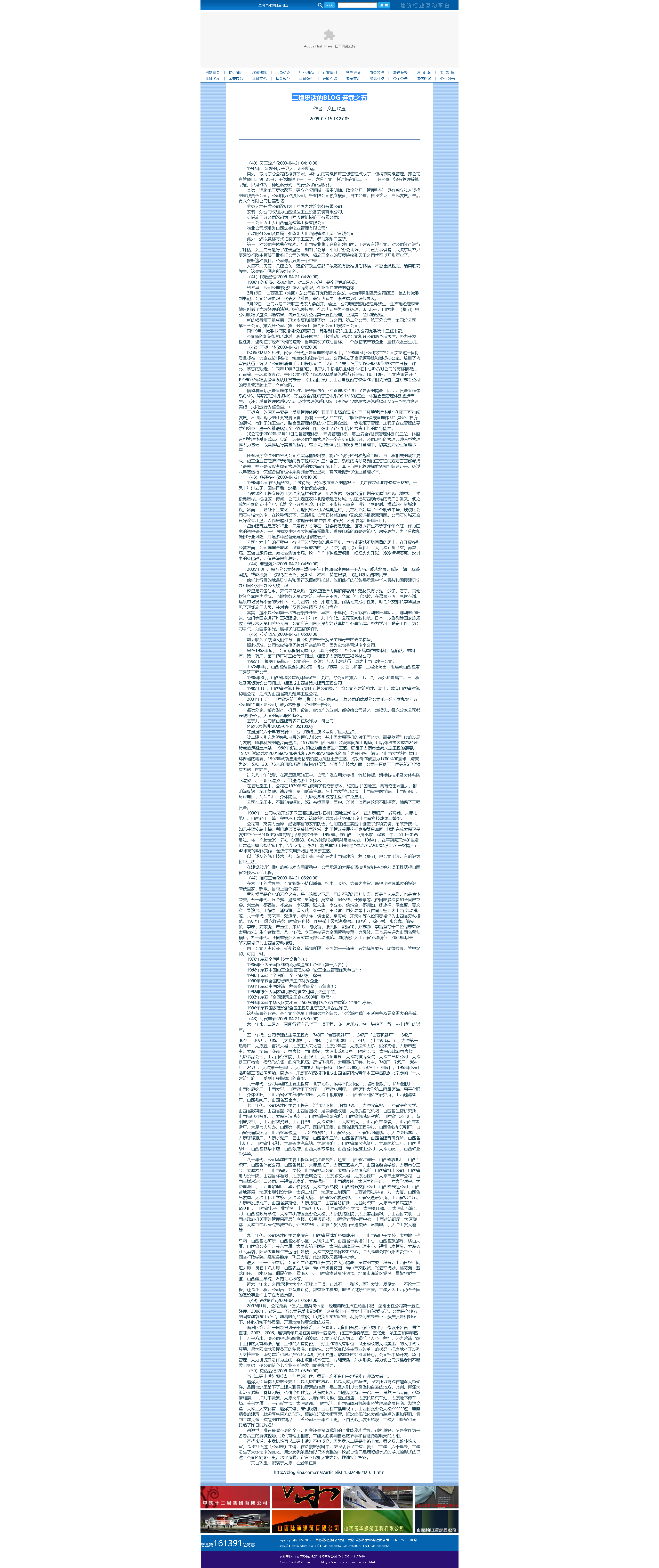 這是2009年9月15日首次在山西省建筑業(yè)協(xié)會網(wǎng)站全文轉(zhuǎn)發(fā)張文玉同志所撰《二建史話》五十篇。