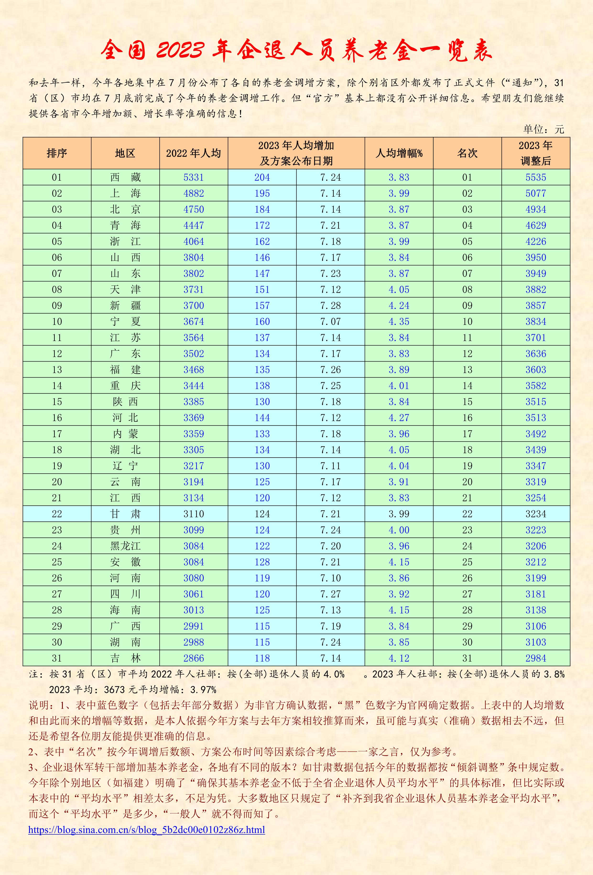關注他的博客,已經(jīng)好多年,他每年不厭其煩做一件事情,讓我感動,那就是為全國企業(yè)退休的老人們服務,提供當年養(yǎng)老金信息的同時,編輯了比較和匯總,讓大家一看便知,心中有數(shù),各得其所!