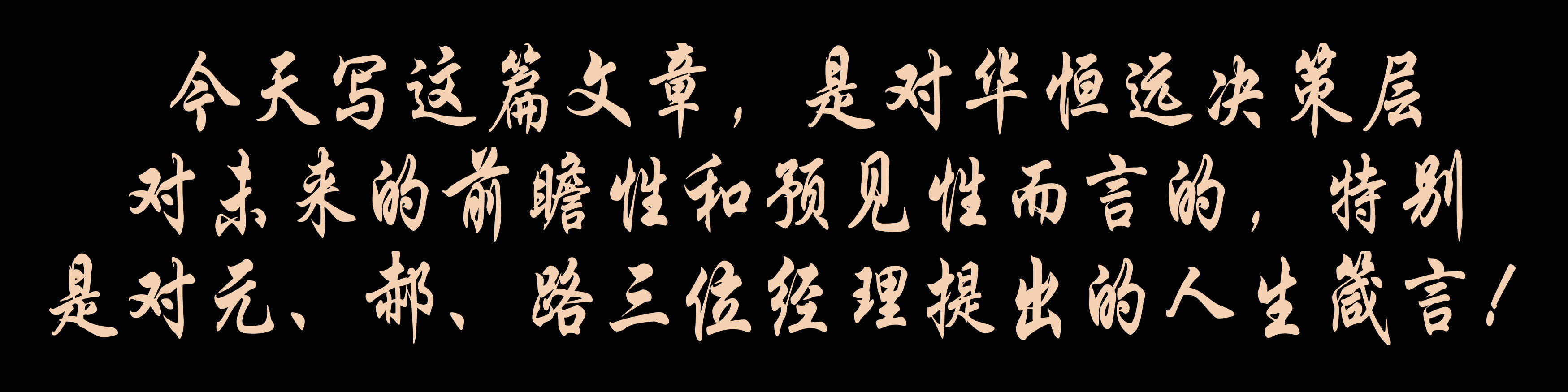 今天寫這篇文章,是對華恒遠(yuǎn)決策層對未來的前瞻性和預(yù)見性而言的,特別是對元、郝、路三位經(jīng)理提出的人生箴言!