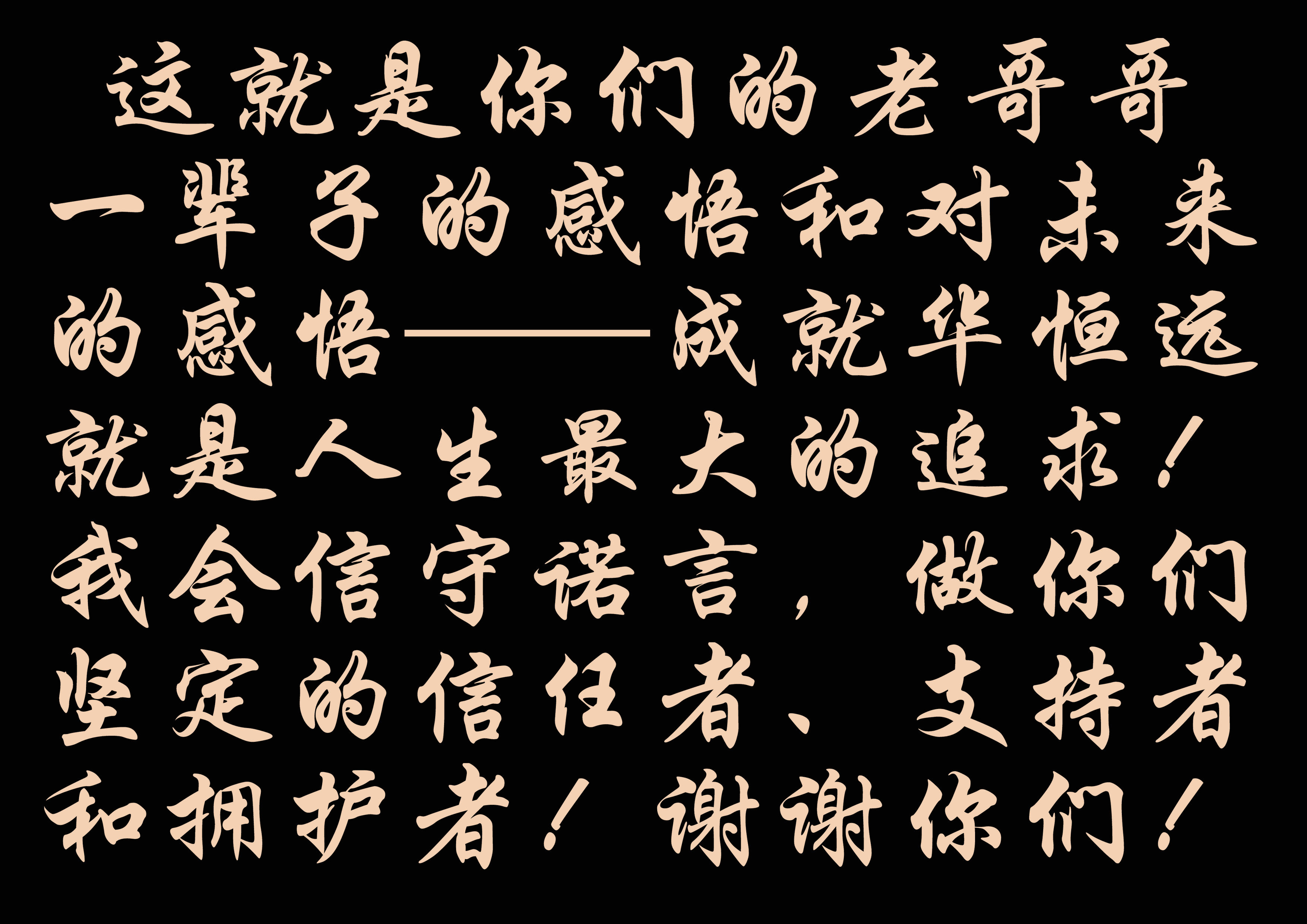 這就是你們的老哥哥一輩子的感悟和對未來的感悟——成就華恒遠(yuǎn)就是人生最大的追求!
