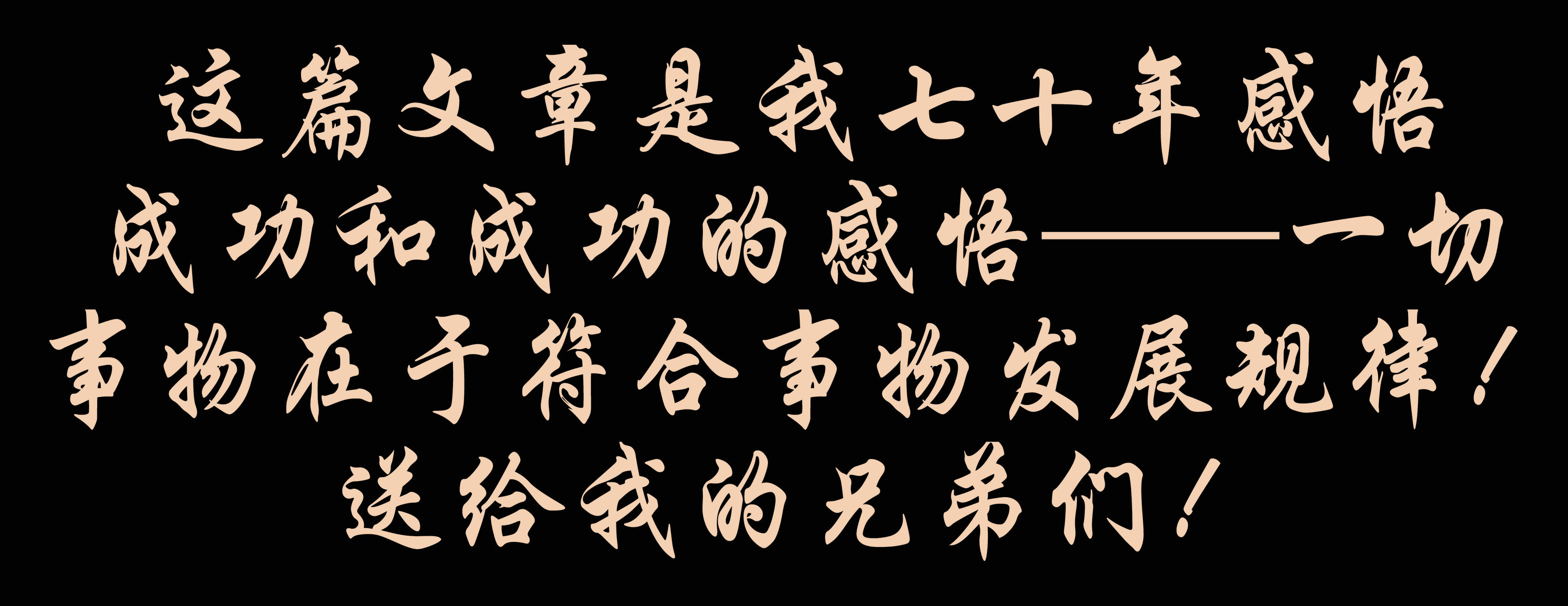 這篇文章是我七十年感悟成功和成功的感悟——一切事物在于符合事物發(fā)展規(guī)律!送給我的兄弟們!