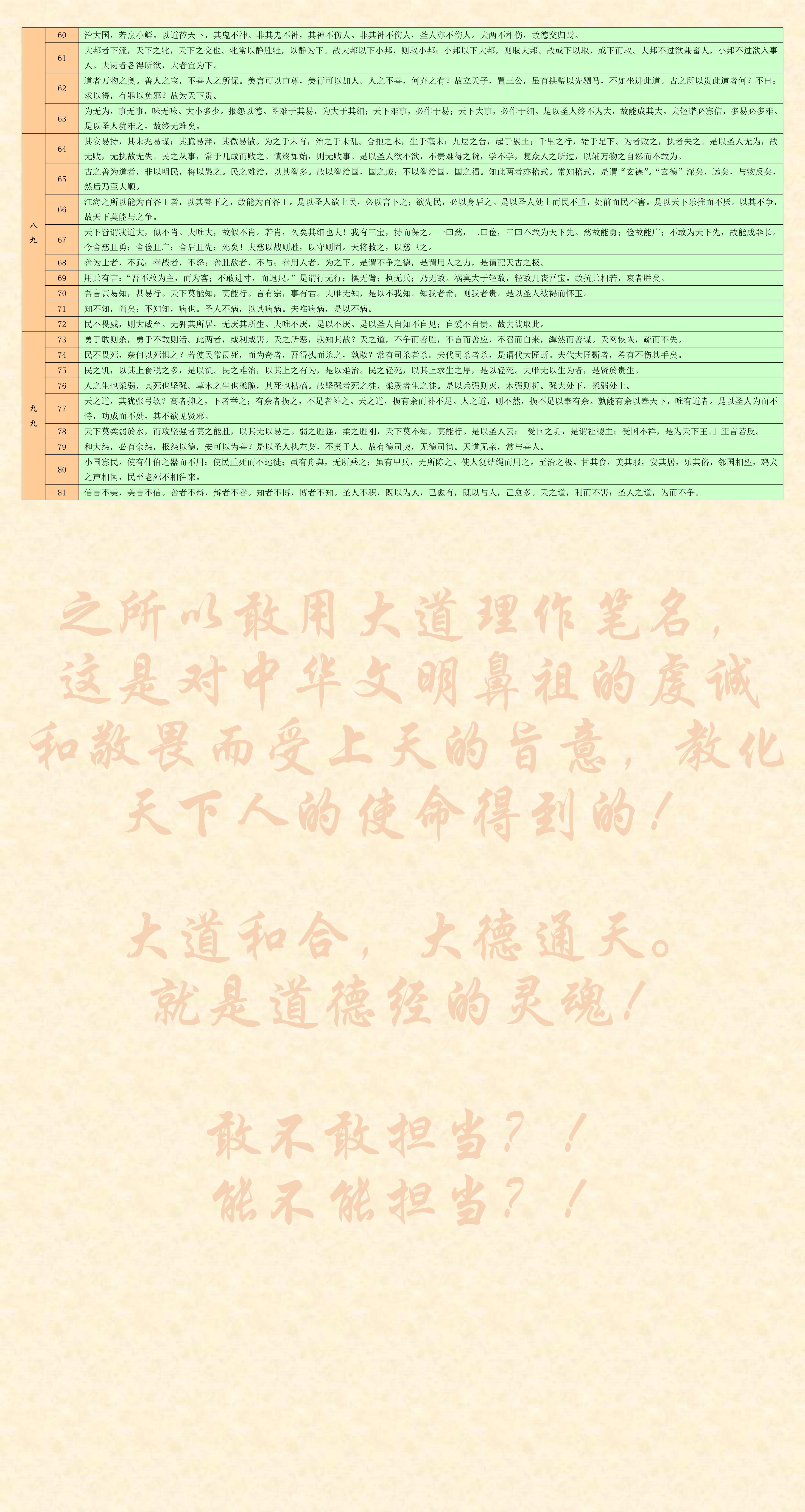 為什么我要用表格的形式編輯《道德經(jīng)》呢?就是告訴你中華文明和中華文化最高境界什么是大道理!