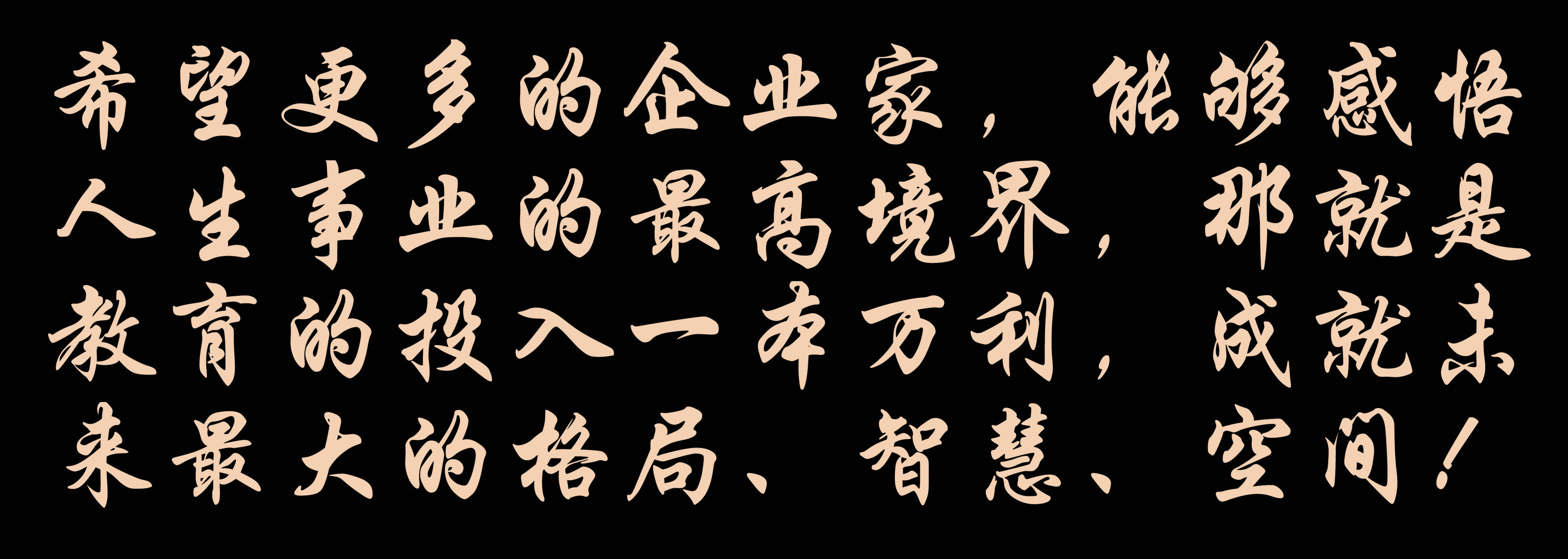 希望更多的企業(yè)家,能夠感悟人生事業(yè)的最高境界,那就是教育的投入一本萬利,成就未來最大的格局、智慧、空間!