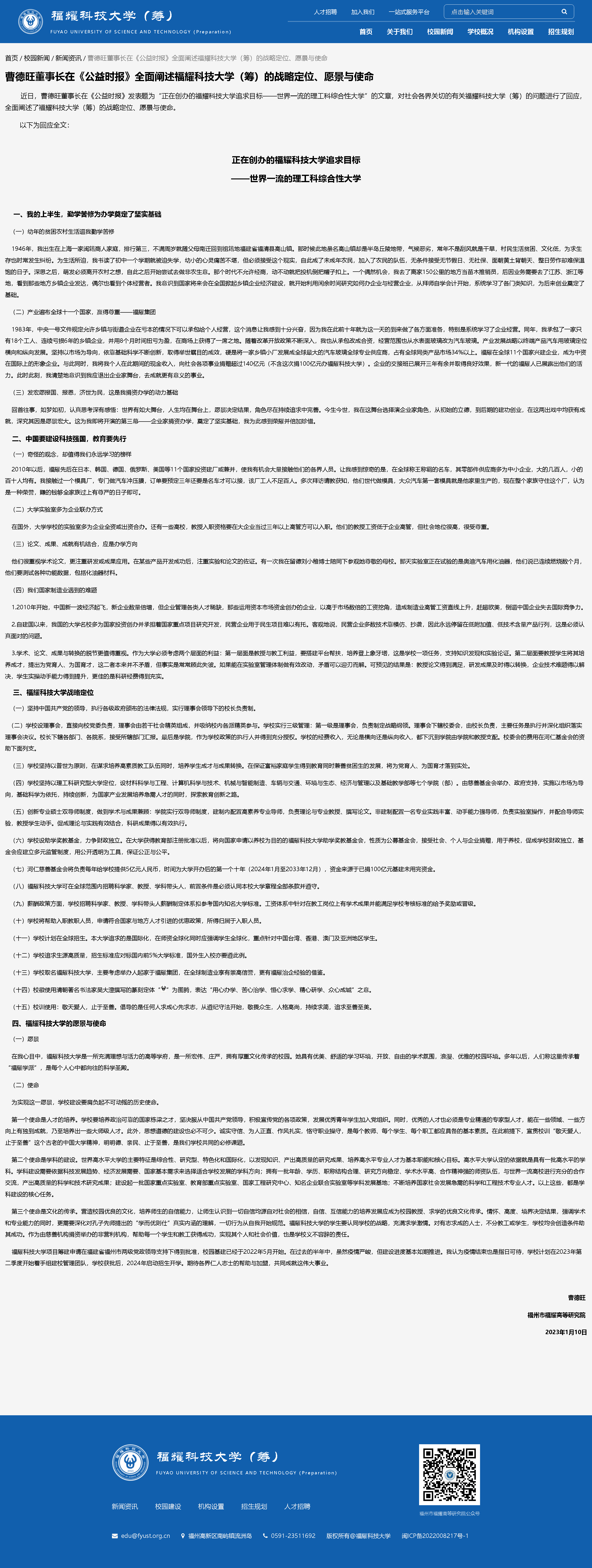 官網(wǎng)顯示,福耀科技大學(xué)(籌)是由福耀集團董事局主席曹德旺所創(chuàng)辦的河仁慈善基金會首期捐資100億元人民幣,以民辦公助的形式與福州市人民政府合作創(chuàng)辦的一所新型應(yīng)用型、研究性大學(xué)。