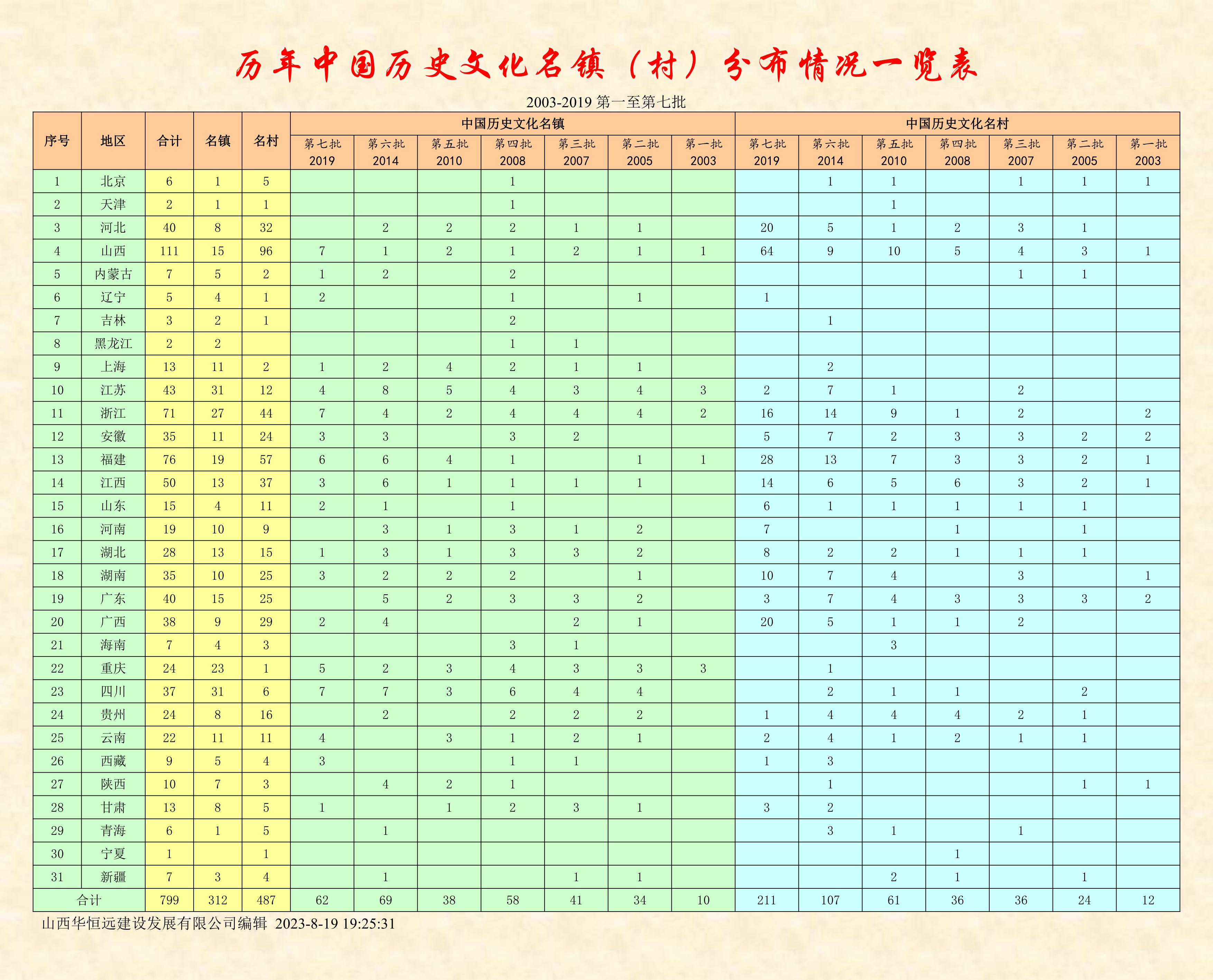 下午,完成了《全國歷史文化名鎮(zhèn)(村)名錄》的分布情況一覽表,山西省以111個(gè)名鎮(zhèn)名村,位居第一名!