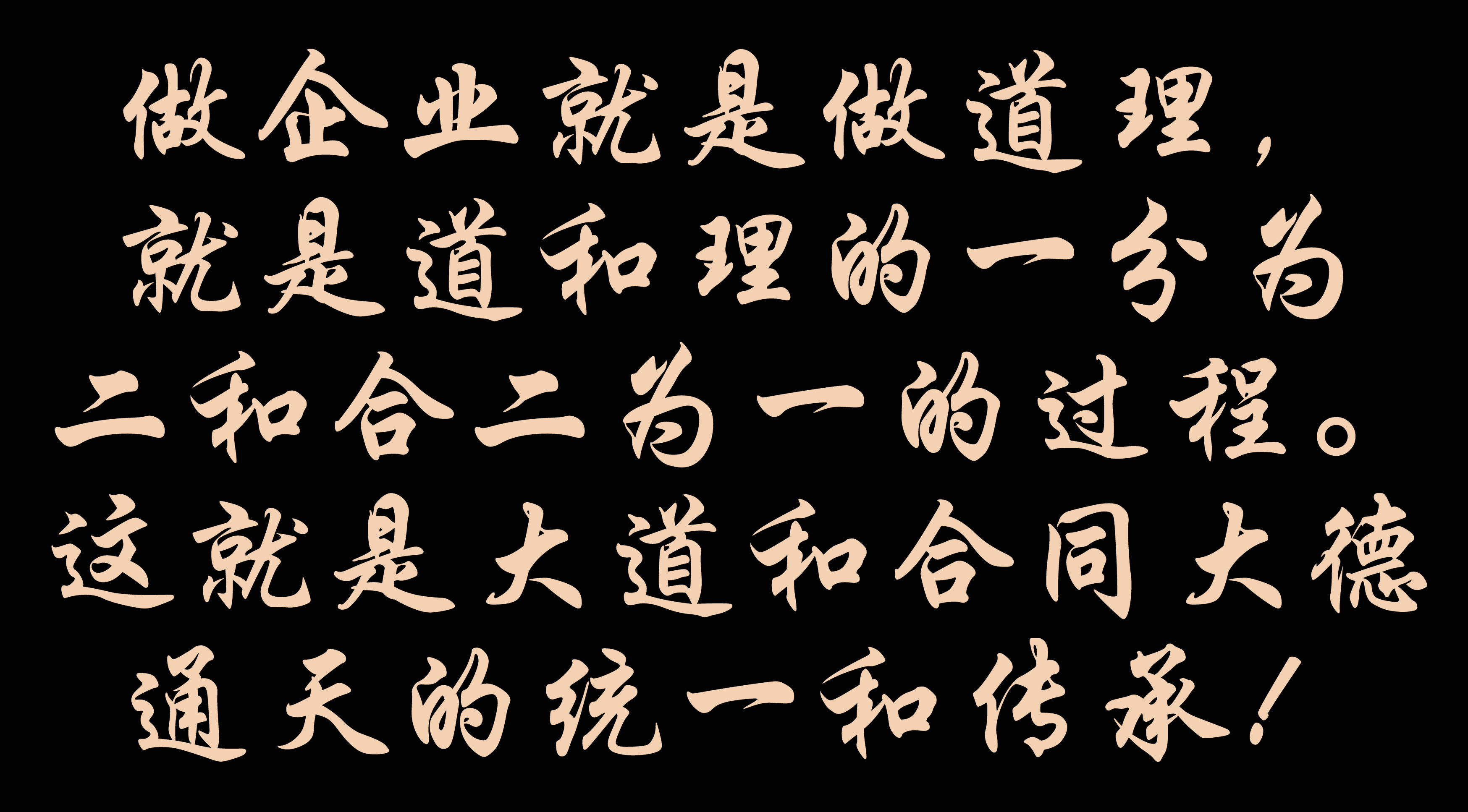 大自然一切事物,都是一個非常簡單的和與不和,合與不合的利益關(guān)系,做企業(yè)就是做道理,就是道和理的一分為二和合二為一的過程。這就是大道和合同大德通天的統(tǒng)一和傳承!