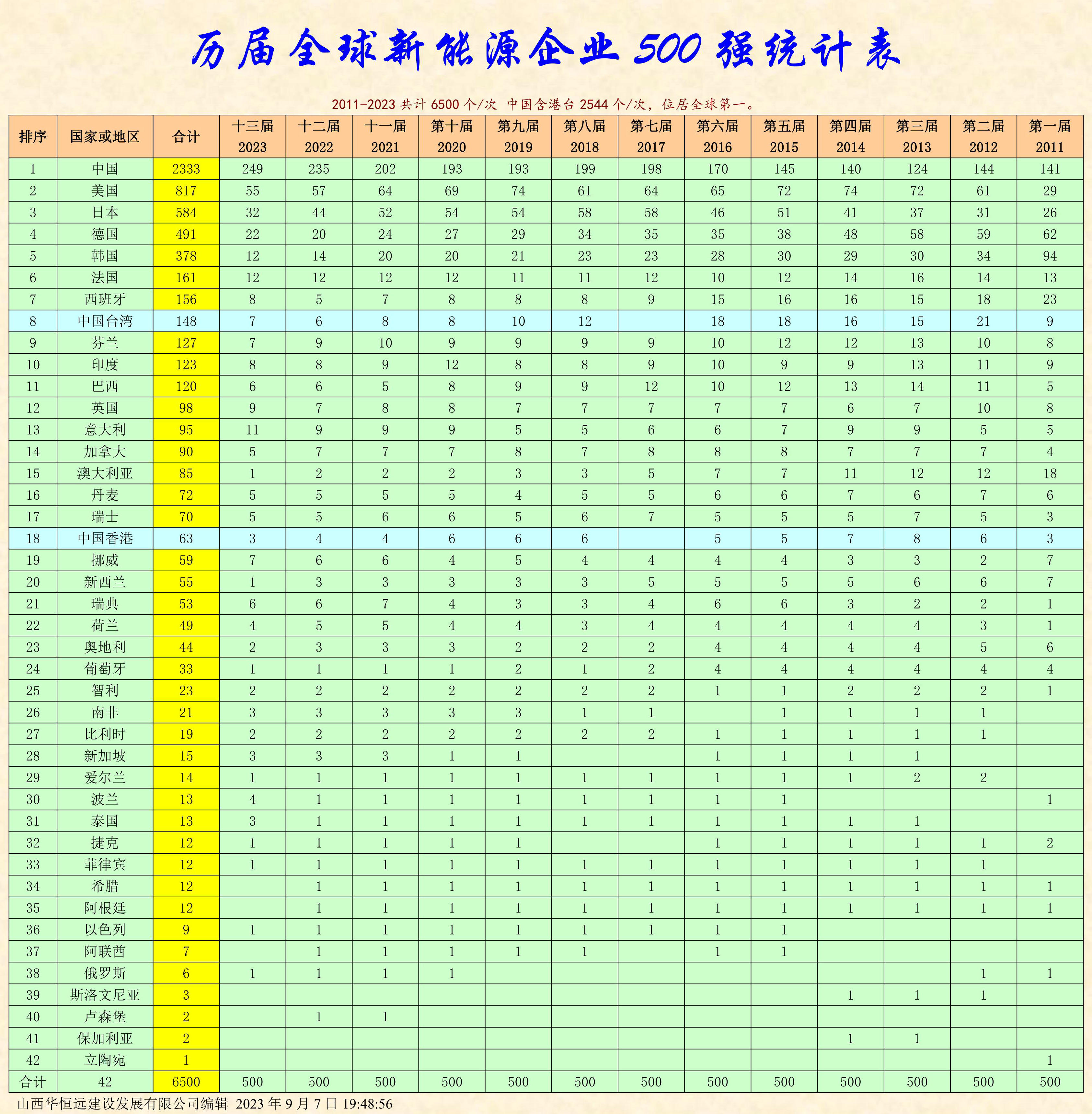 為了配合這次國際盛會,用了整整一天的時間,編輯了這張一目了然的統(tǒng)計表,以此助興!