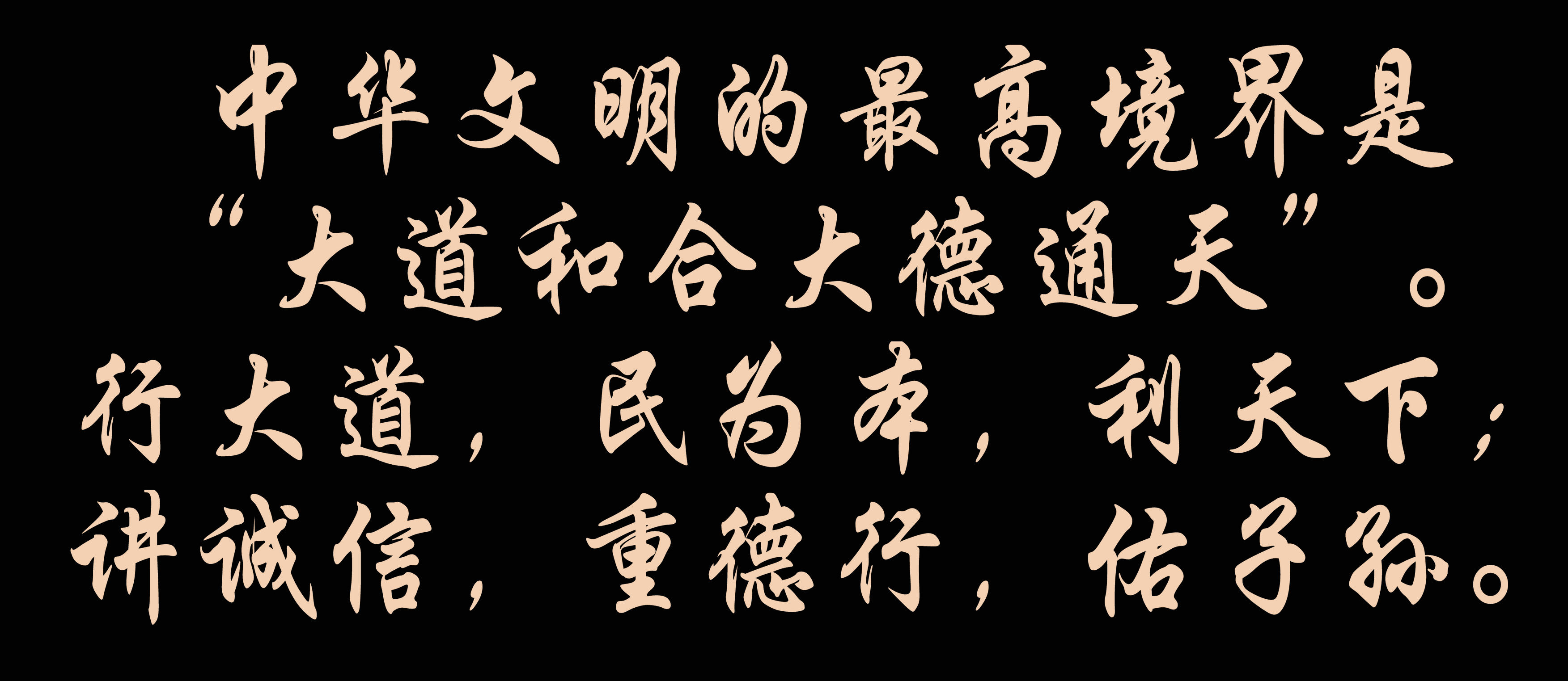 中華文明的最高境界是“大道和合大德通天”。行大道,民為本,利天下;講誠信,重德行,佑子孫。