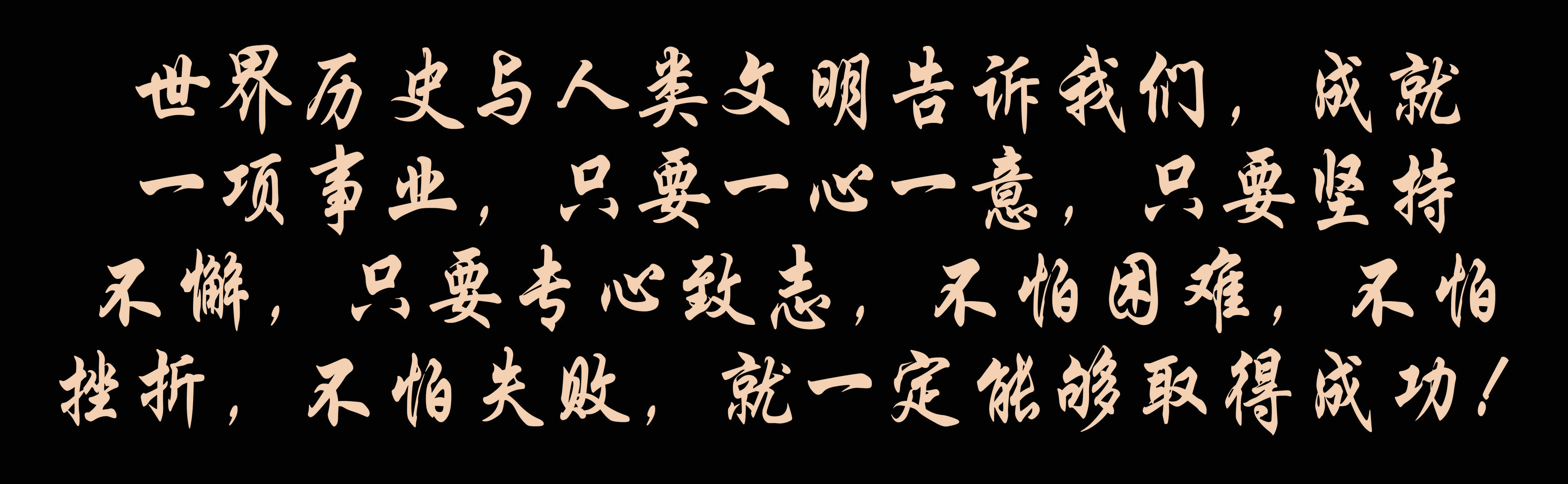 世界歷史與人類文明告訴我們,成就一項事業(yè),只要一心一意,只要堅持不懈,只要專心致志,不怕困難,不怕挫折,不怕失敗,就一定能夠取得成功!