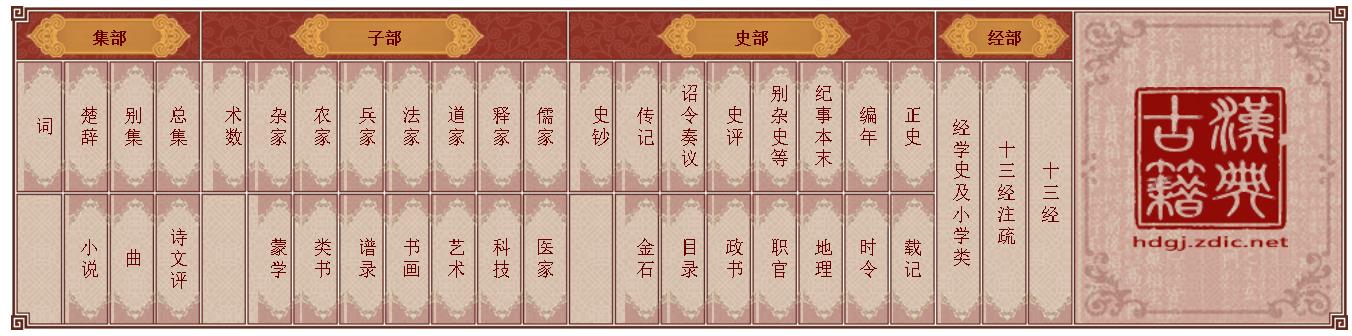 史部 子部 集部 詩部 儒部 易部 藝部 醫(yī)部 叢部 佛部 道部