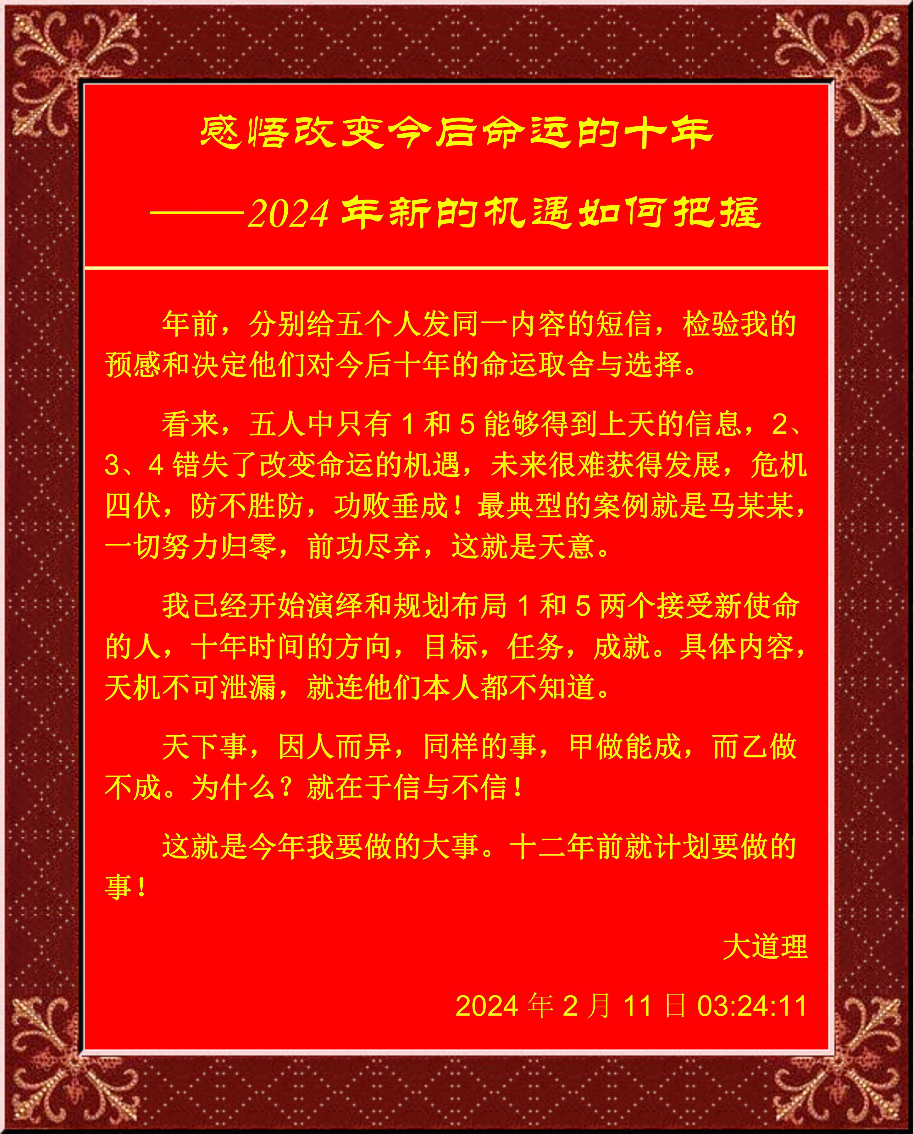 年前,分別給五個(gè)人發(fā)同一內(nèi)容的短信,檢驗(yàn)我的預(yù)感和決定他們對(duì)今后十年的命運(yùn)取舍與選擇。