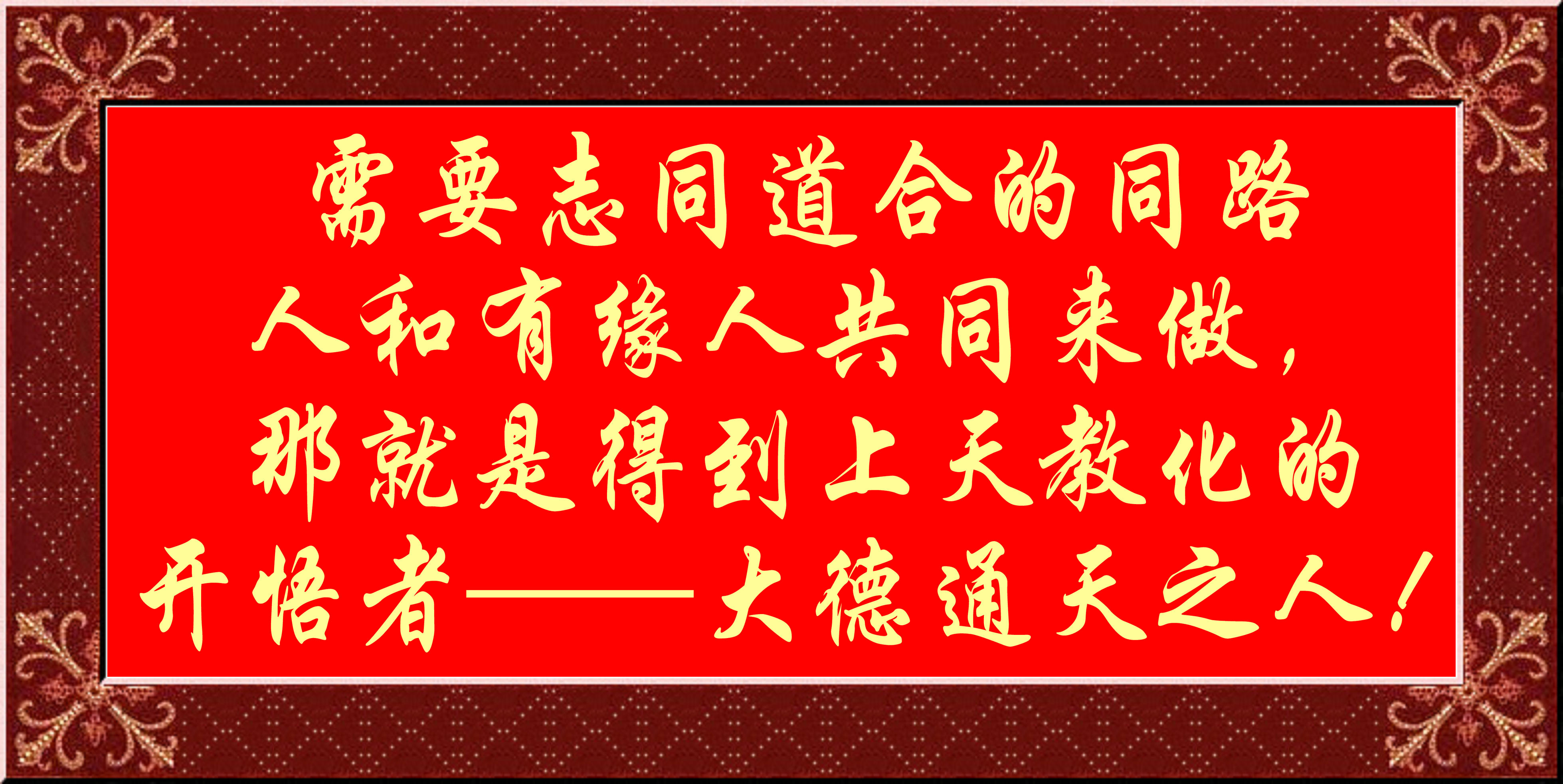 這件事,需要志同道合的同路人和有緣人共同來做,那就是得到上天教化的開悟者——大德通天之人!