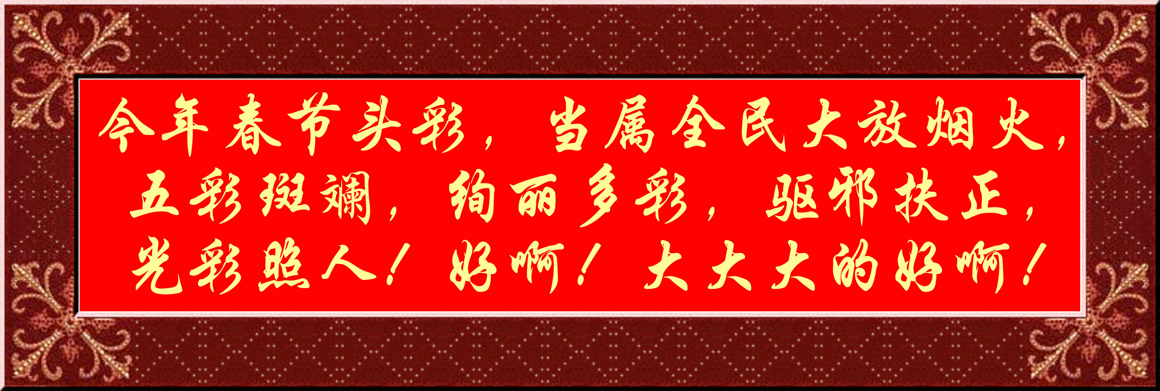 今年春節(jié)頭彩,當(dāng)屬全民大放煙火,五彩斑斕,絢麗多彩,驅(qū)邪扶正,光彩照人!好?。?!大大大的好?。。?!