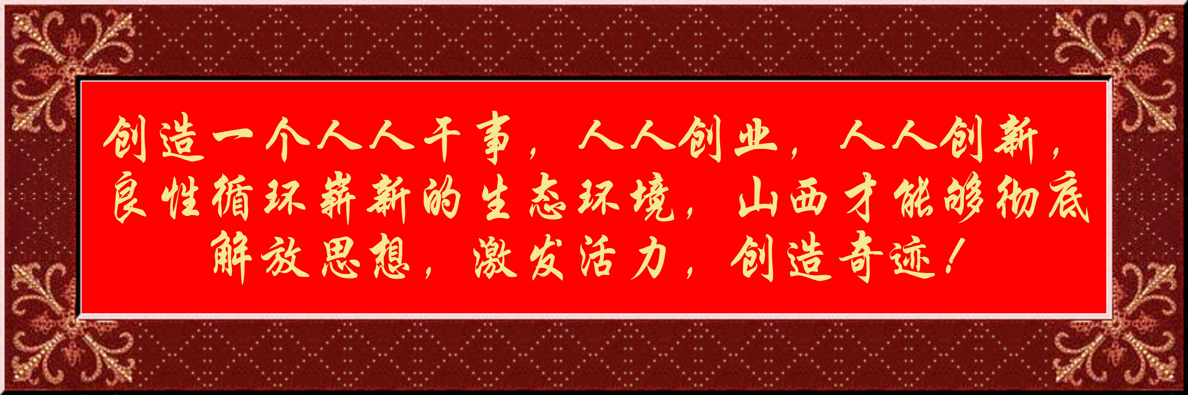 山西需要發(fā)展,需要大發(fā)展,需要以更大的膽識(shí)和魄力面對(duì)自身的差距和不足,那就是敢于革自己的命,把那些不適應(yīng)新時(shí)代發(fā)展的條條框框徹底打破,把那些只為名而不為民的庸官?gòu)氐浊宄?a href="http://m.nrnulpo.cn/uploadfile/file/20230124/1a2cb5b52.pdf" target="_blank">創(chuàng)造一個(gè)人人干事,人人創(chuàng)業(yè),人人創(chuàng)新,良性循環(huán)嶄新的生態(tài)環(huán)境,山西才能夠徹底解放思想,激發(fā)活力,創(chuàng)造奇跡!