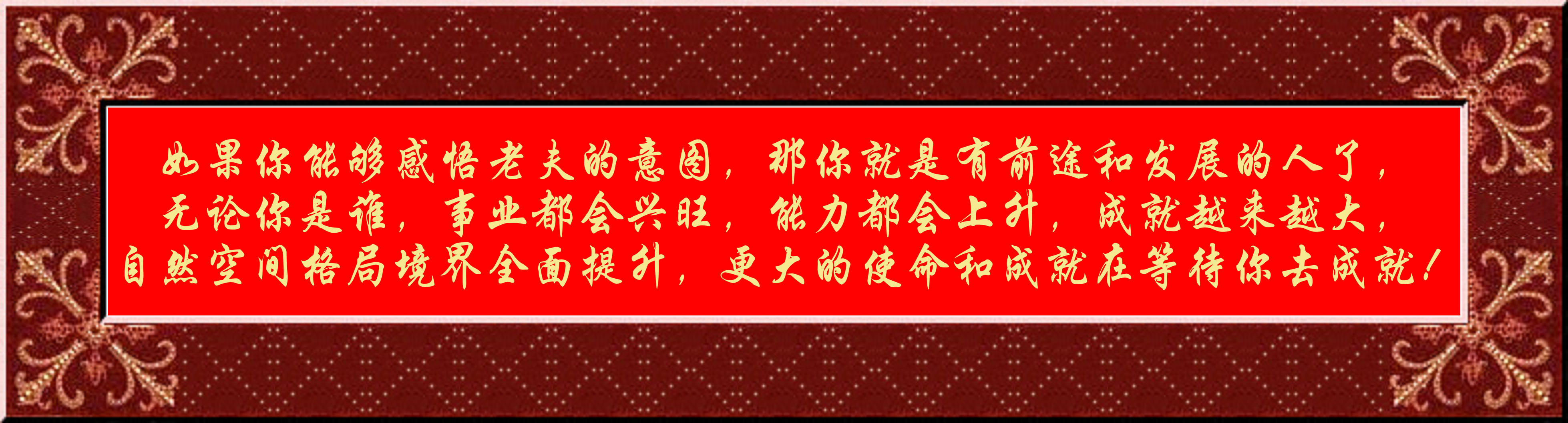 如果你能夠感悟老夫的意圖,那你就是有前途和發(fā)展的人了,無論你是誰,事業(yè)都會興旺,能力都會上升,成就越來越大,自然空間格局境界全面提升,更大的使命和成就在等待你去成就!